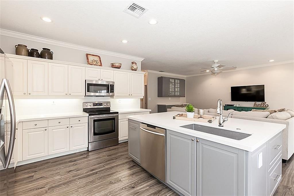 Spectacular pool home in the guard-gated Silver Shores community! Home features an open, renovated kitchen w/ huge island, quartz counters & stainless steel appliances. Enormous master suite features a sitting area, 2 walk-in closets & renovated bath. Brand new wood floors & fresh paint throughout. The fenced backyard is perfect for entertaining complete w/ pool, patio, exterior lighting, sound system & retractable awnings. 2 new Trane AC units & accordion shutters. Community tennis courts, pool, gym etc.