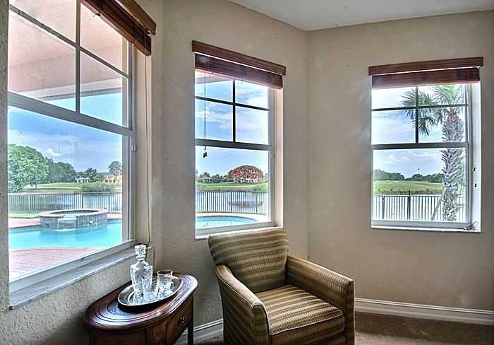 Panoramic Golf Course home with Lake View + Pool & Spa - 5 Bedrooms, Office + Loft 5 Bathrooms,3 Car Garage with circular driveway. Downstairs with Master bedrm +1 bedroom with ensuite bath +office. Huge Loft upstairs, + 2nd Master suite + Add'L 1 Bedr ooms+ 1 full bath. Sits on the Largest Cul-De-Sac Lot in subdivision. Custom lighting, Custom baths. Pool + Spa + Summer kitchen, with large private sitting area near Pool/Sp. 24 hr Guarded, 2 Clubhouses, Tennis, Golf, Pools, Gym.
