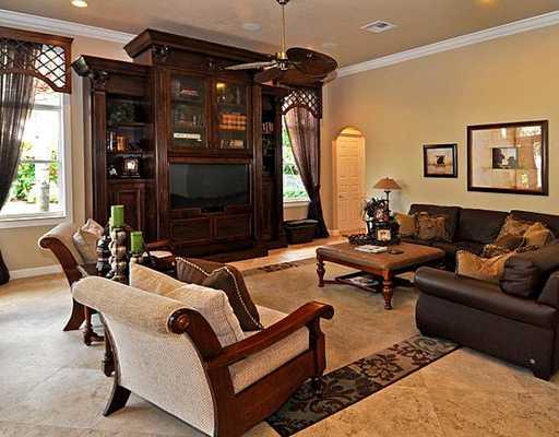 Over 4400' sq. of luxurious living area, w. 5BR/4.5 BA + Den & Loft. 24" Saturnia marble in the living areas. Gourmet kitchen w. granite counters, tumbled marble backsplash, 42" wood cabinets, double oven, stainless steel appliances. MBR w. 2 customized walk-in closets. Real hardwood floors in bedrooms & Den. Elegant built-in entertainment unit in Family Room. Lushly landscaped & private yard. Huge free-form heated pool & spa, Chicago brick paver patio & built-in Summer Kitchen w. sink & refrigerator.