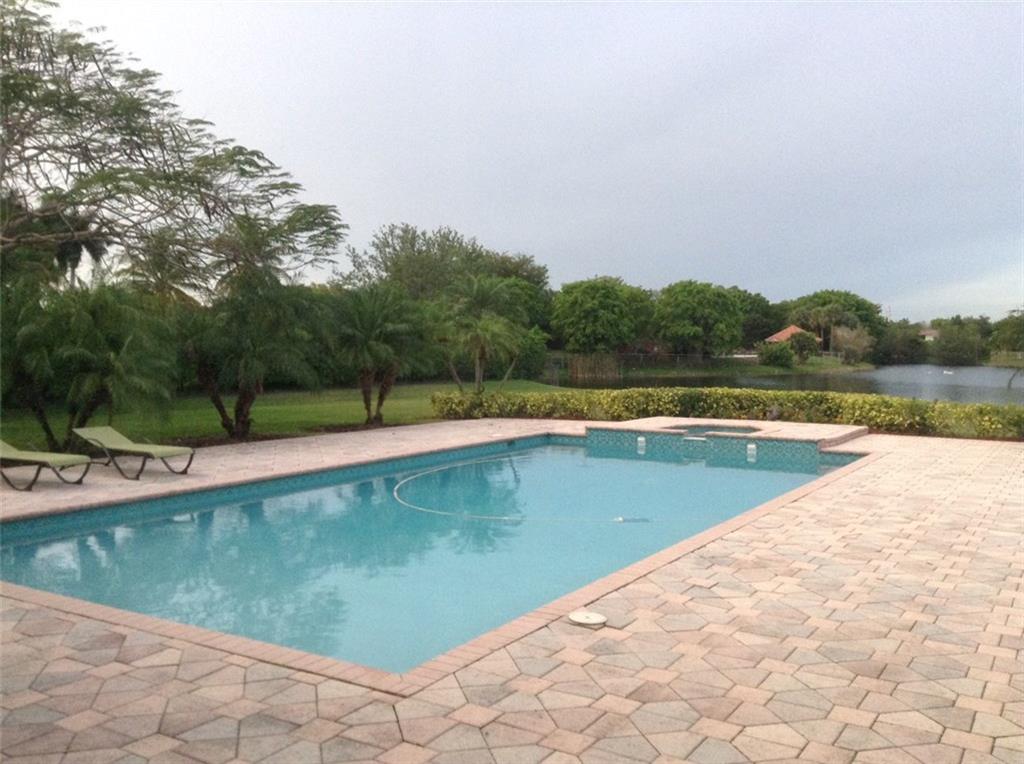 Beautiful home with a relaxing view over Lake in the heart of Weston. Large Pool facing the Lake, green space and well maintained garden. Three car garage, accordion shutters.