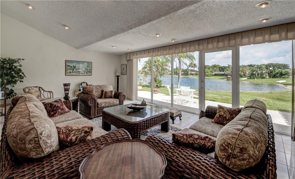 Lakefront townhouse in very nice condition. Large open living room with dining area, additional sunroom over looking lake! Eat in kitchen - Tile floors through-out living area, carpet in bedrooms. Foyer entry with atrium light could be used as home office area. Enclosed Courtyard at front of unit Large 2 car garage Easy access to Miami Beach and Broward