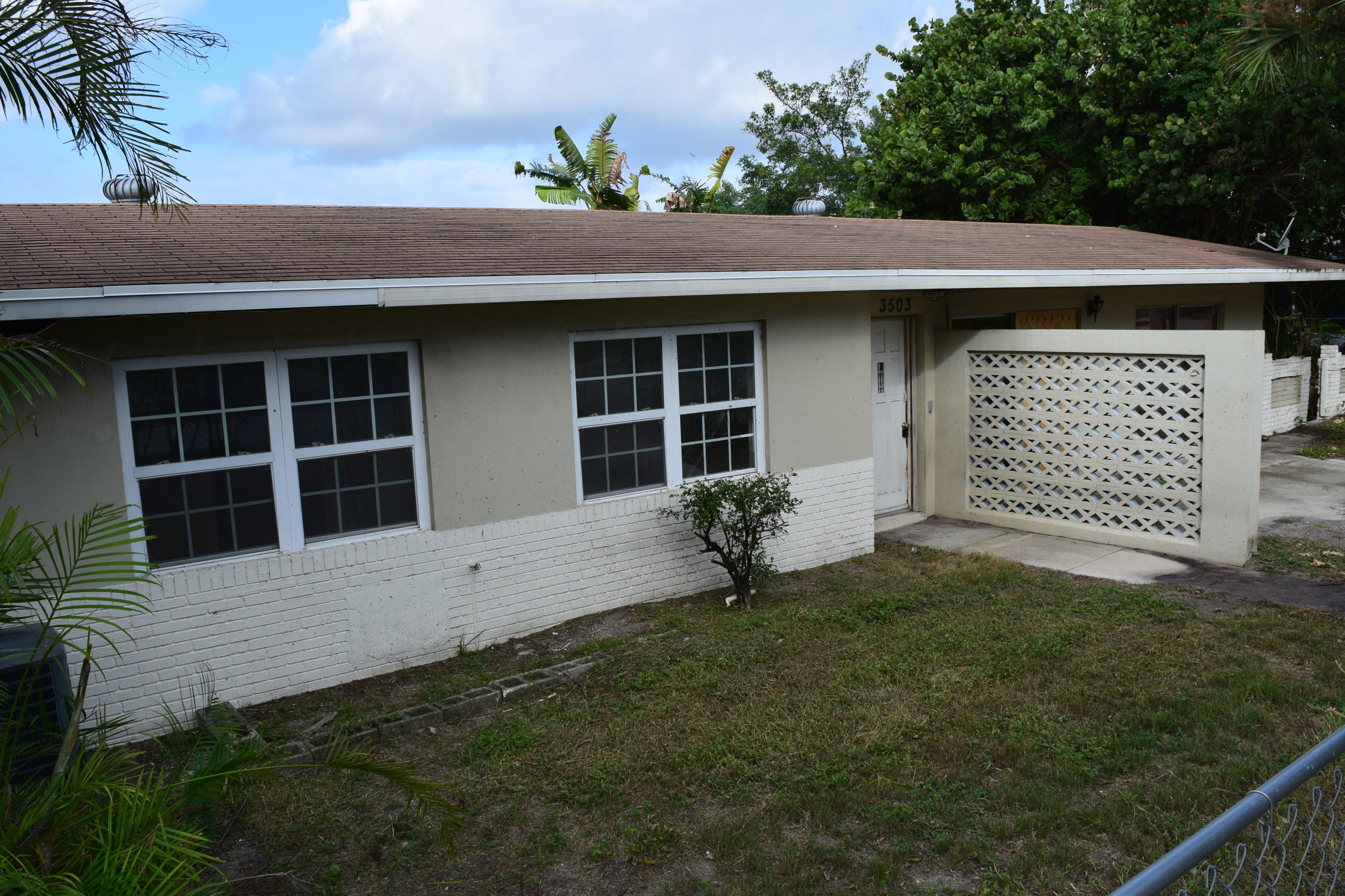 Situated on one of the few hills in West Palm Beach is this 3 bedroom, 1 bath home on a corner lot. Tile flooring throughout living areas with original terrazzo in bedrooms. Newer kitchen and updated ceiling fans in living room and back bedroom. Spacious utility room. Carport parking off 34th St plus street parking on Westview Ave. As-is; cash only; needs TLC. Buyer to sign hold harmless agreement for expired roof permit.