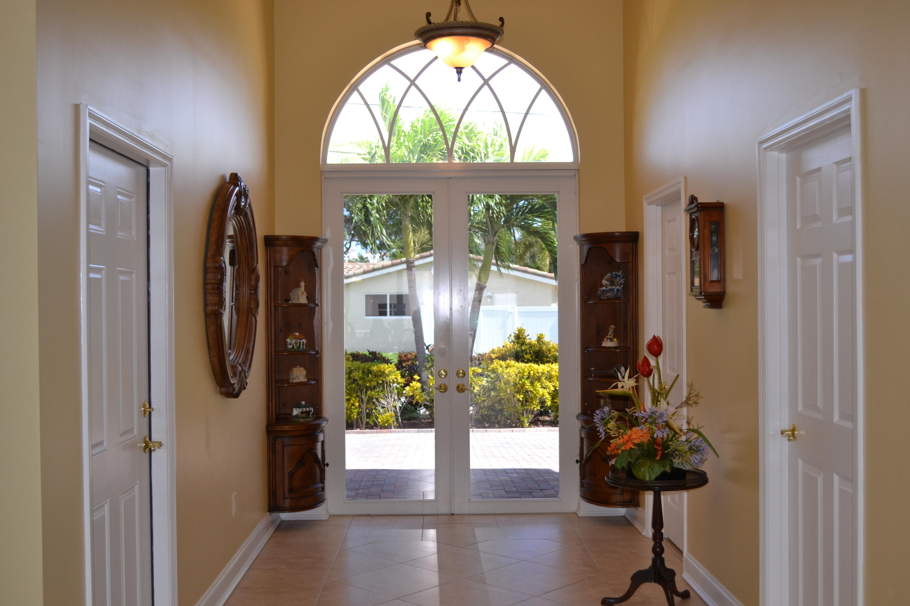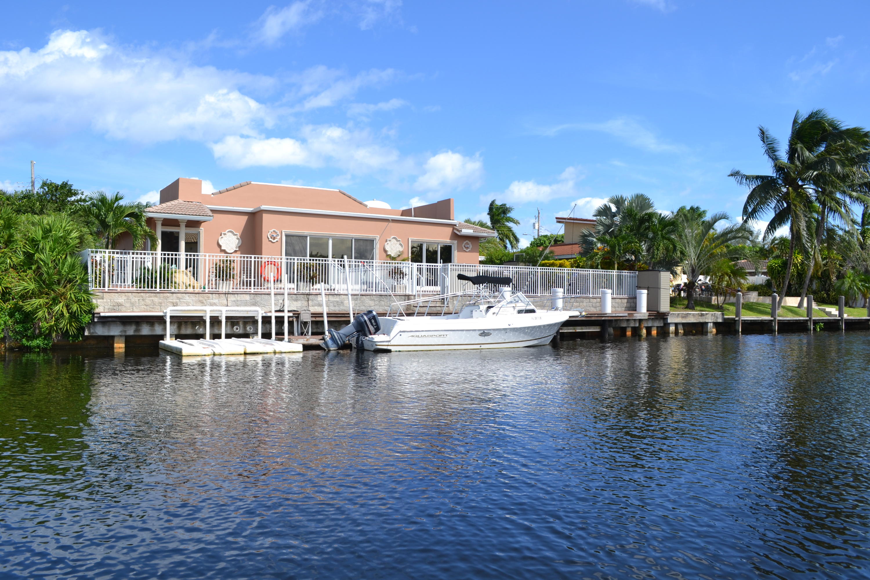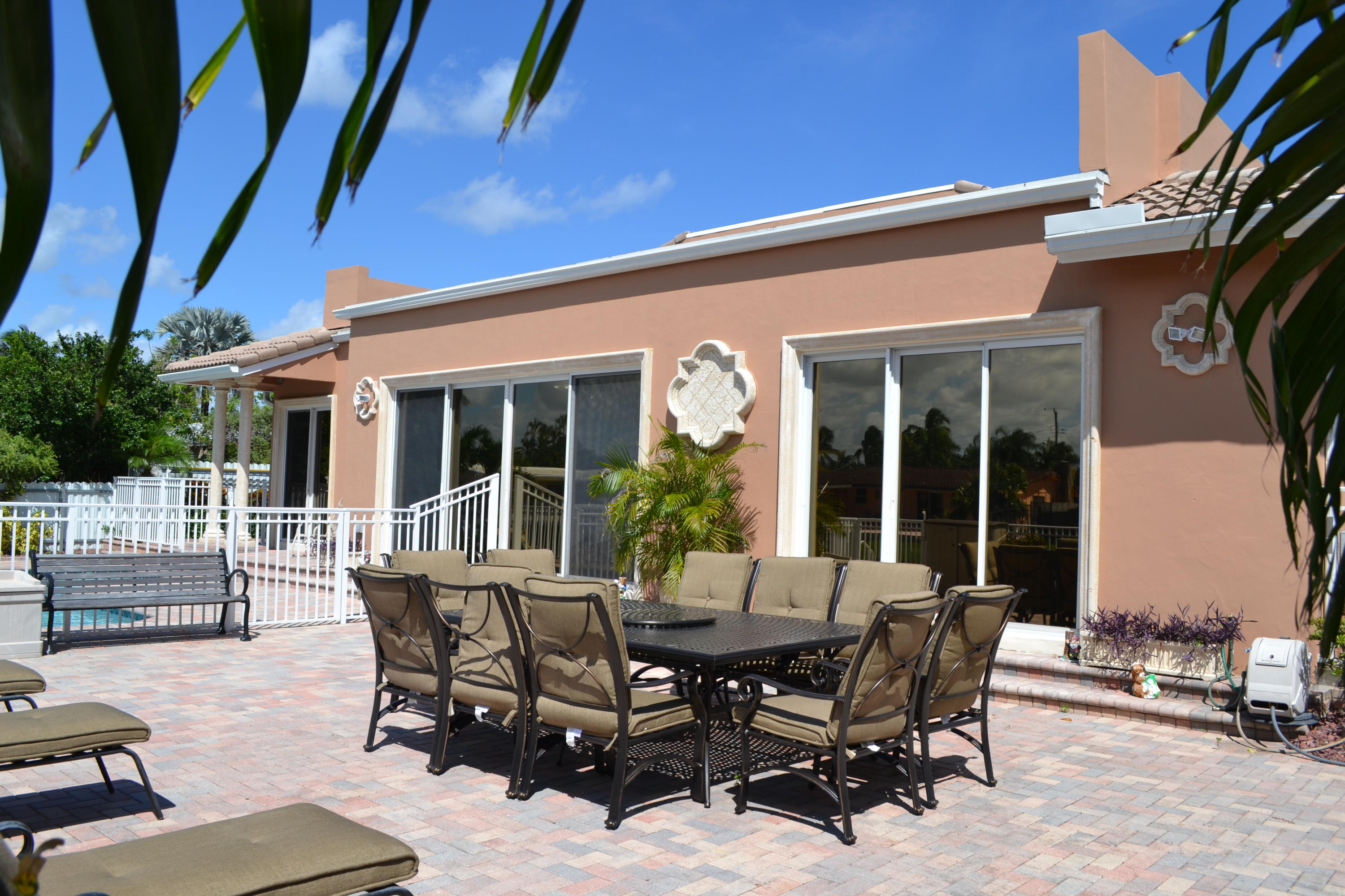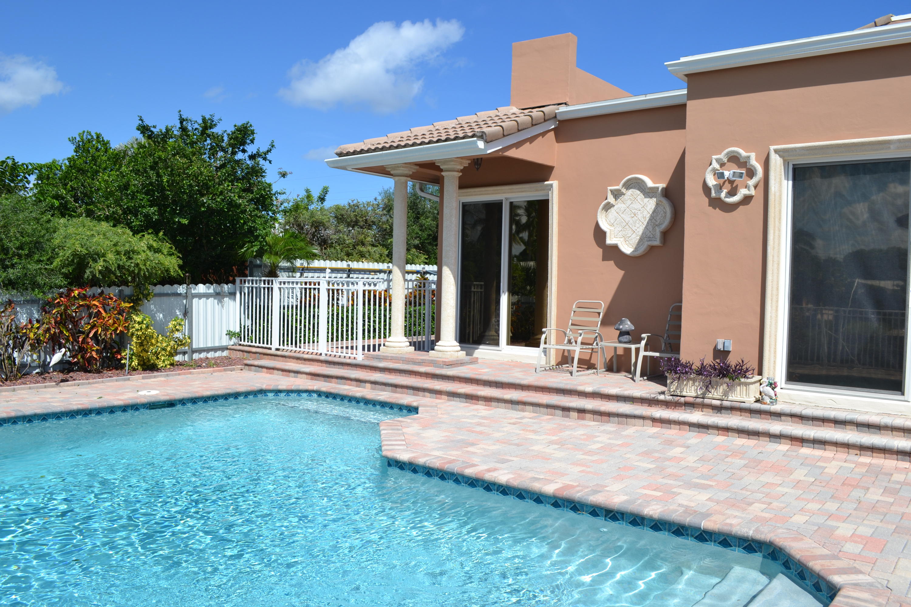 WOW! A rare opportunity in East Boca is this gorgeous custom built 2005 Tuscan Style home surrounded by lush tropical landscaping in Boca Islands; a community of private cul-de-sac streets on the beautiful deep waters of the El Rio Canal. From the beautiful brick & sand circular driveway is the magnificent double door entry to the grand open floor plan with a spectacular view of the breathtaking El Rio canal, a salt-water pool with waterfall and a stunning outside patio. The interior delights with a foyer atrium window, fine porcelain tile floors throughout and breathtaking ten foot ceilings. The kitchen raves custom wood cabinets, stainless steel appliances, granite counters, large breakfast bar and sliding glass doors that open to a magnificent outside patio for family and friends.