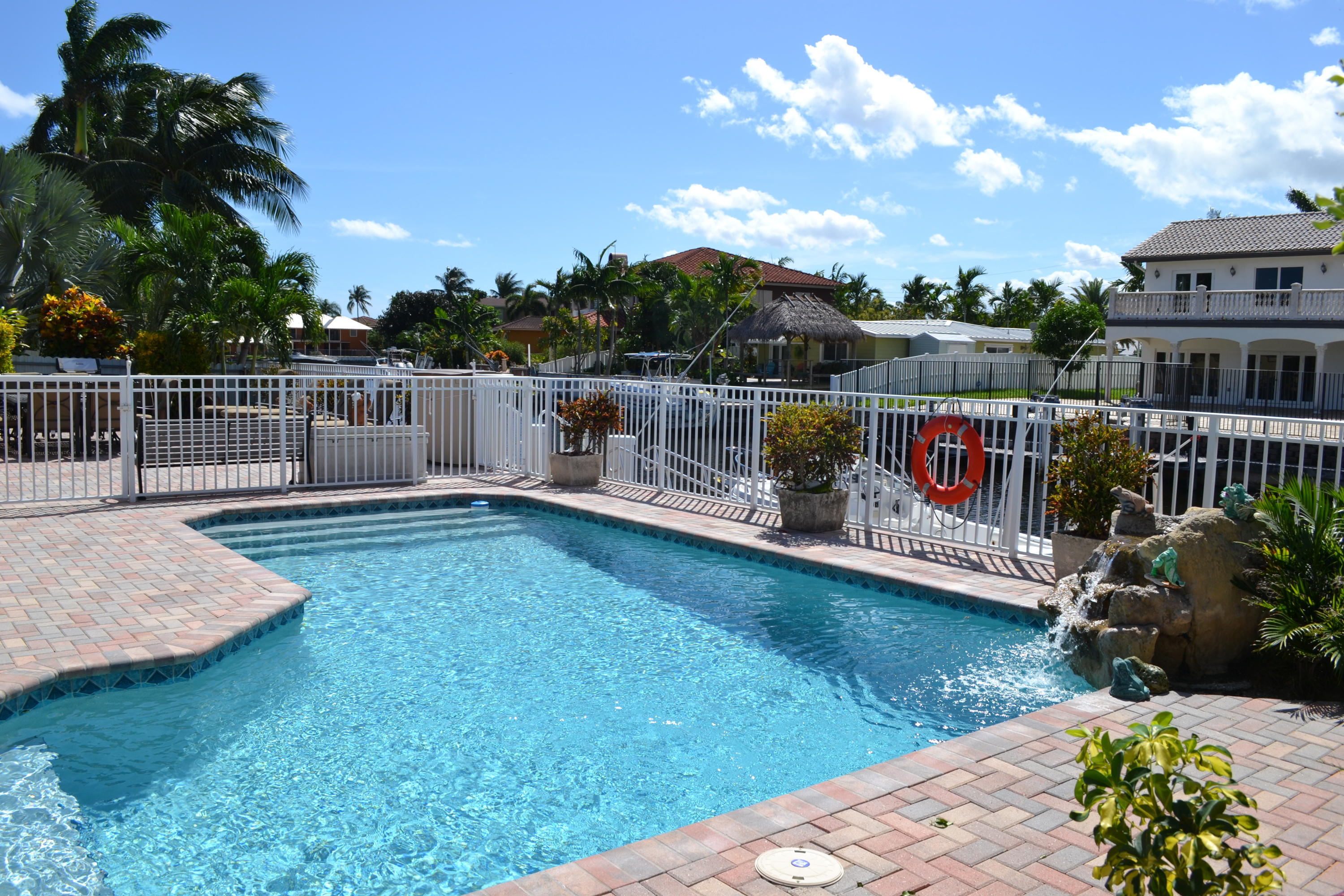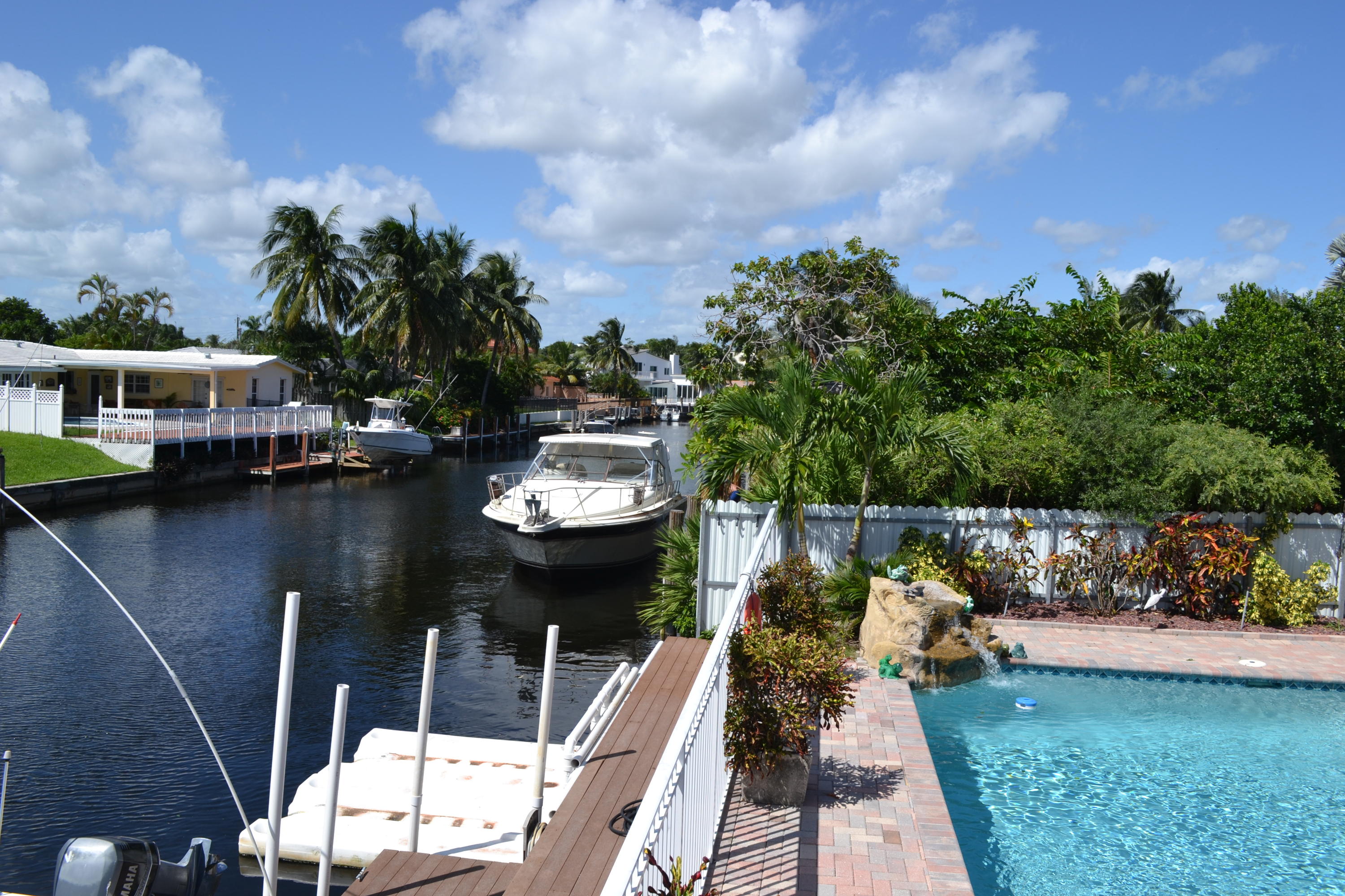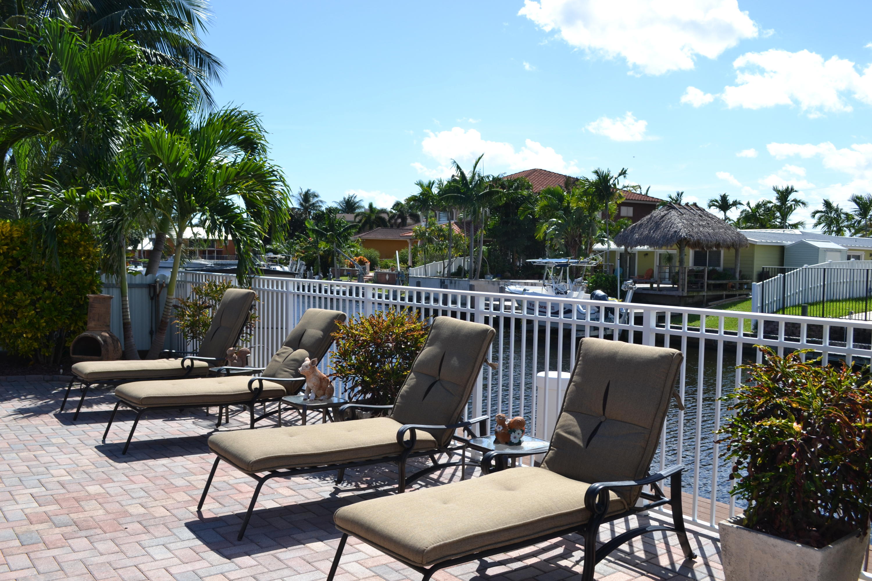 WOW! A rare opportunity in East Boca is this gorgeous custom built 2005 Tuscan Style home surrounded by lush tropical landscaping in Boca Islands; a community of private cul-de-sac streets on the beautiful deep waters of the El Rio Canal. From the beautiful brick & sand circular driveway is the magnificent double door entry to the grand open floor plan with a spectacular view of the breathtaking El Rio canal, a salt-water pool with waterfall and a stunning outside patio. The interior delights with a foyer atrium window, fine porcelain tile floors throughout and breathtaking ten foot ceilings. The kitchen raves custom wood cabinets, stainless steel appliances, granite counters, large breakfast bar and sliding glass doors that open to a magnificent outside patio for family and friends.