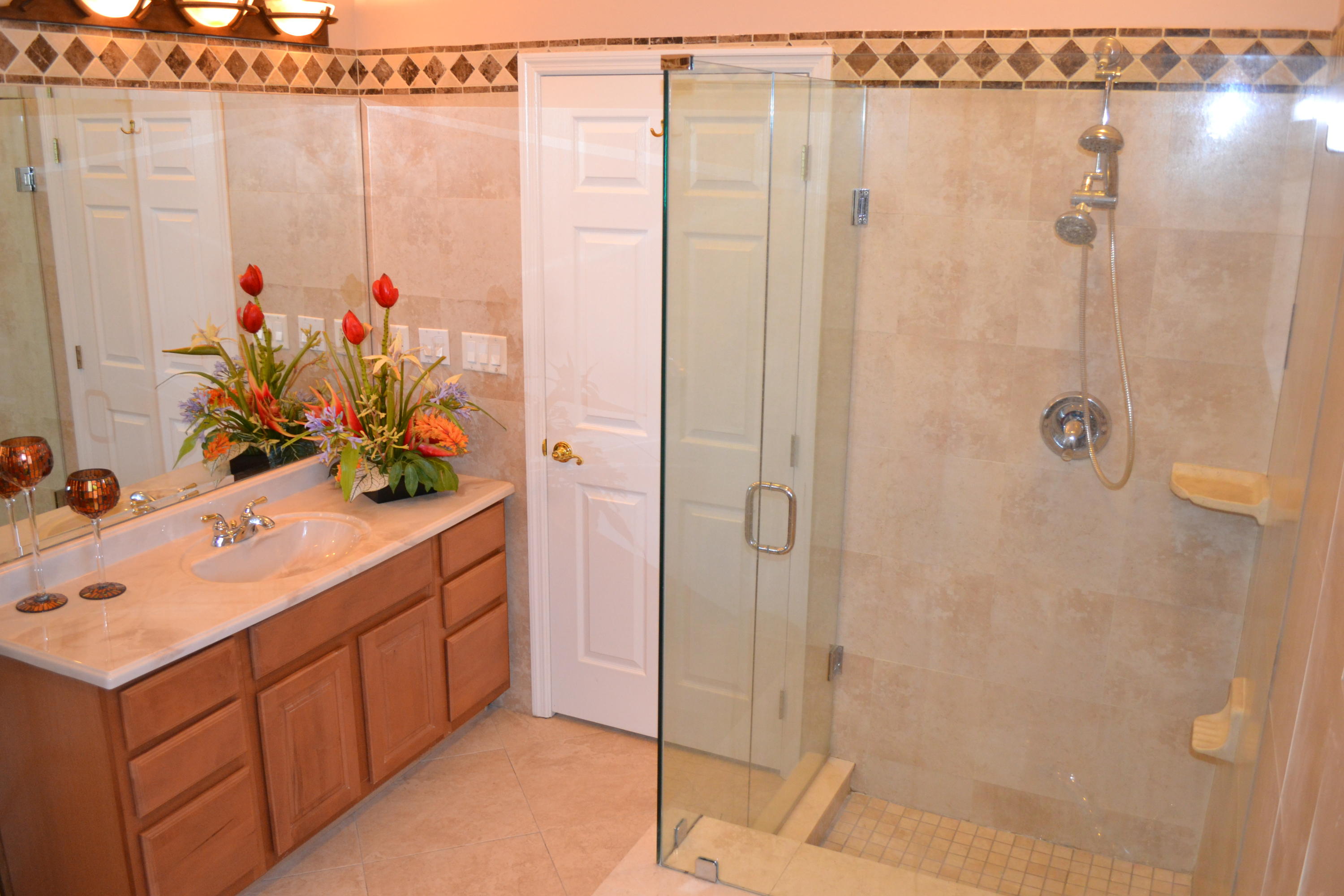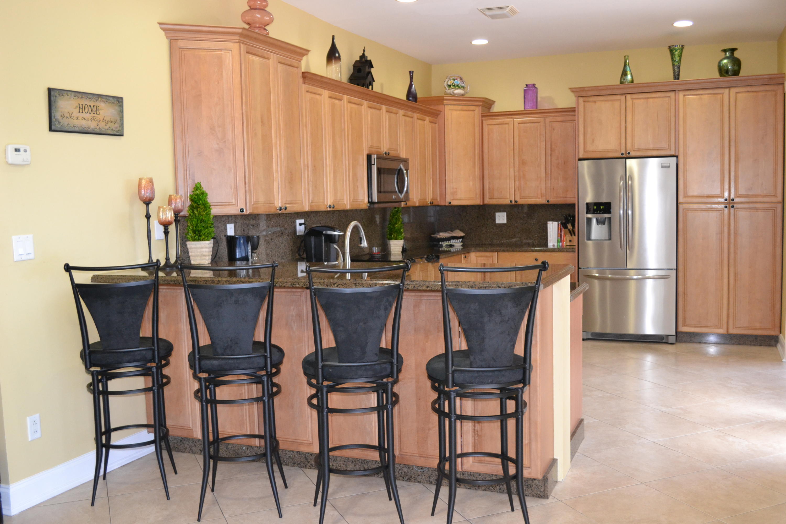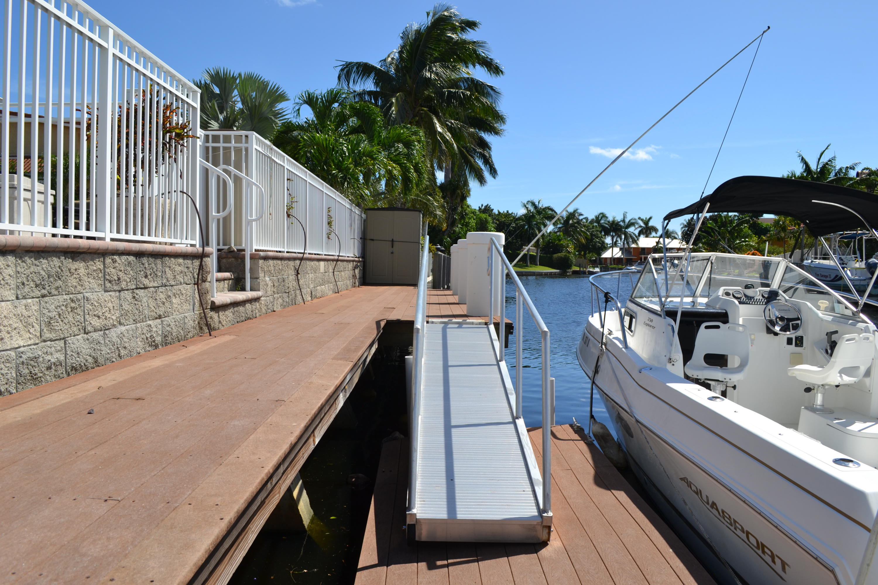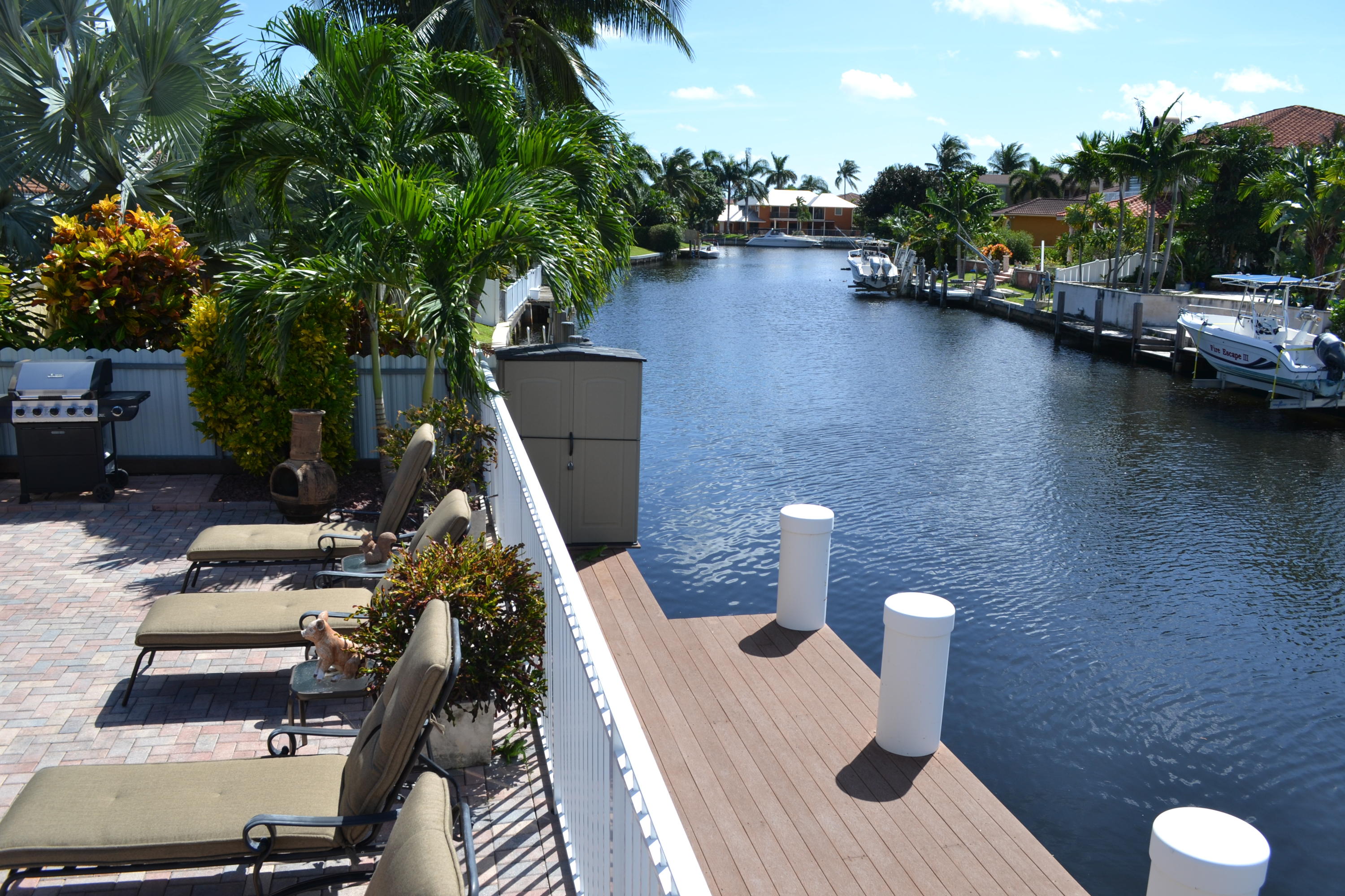 WOW! A rare opportunity in East Boca is this gorgeous custom built 2005 Tuscan Style home surrounded by lush tropical landscaping in Boca Islands; a community of private cul-de-sac streets on the beautiful deep waters of the El Rio Canal. From the beautiful brick & sand circular driveway is the magnificent double door entry to the grand open floor plan with a spectacular view of the breathtaking El Rio canal, a salt-water pool with waterfall and a stunning outside patio. The interior delights with a foyer atrium window, fine porcelain tile floors throughout and breathtaking ten foot ceilings. The kitchen raves custom wood cabinets, stainless steel appliances, granite counters, large breakfast bar and sliding glass doors that open to a magnificent outside patio for family and friends.