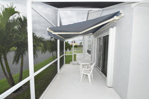 Expansive lake views make you feel like your on a cruise ship! Immaculate and meticulously maintained. Barrel tile roof 2004, AC unit 2012, Beautifully updated Bathrooms with porcelain white tile and stylish vanities! Kitchen is also renovated less then 3 years ago with all wood cabinets a large Farm sink and white Corian counters and backsplashes. Custom Plantation shutters. Wall to wall large stone tile-no carpets here! Accordion shutters, newer double hurricane frnt door plus double scrn door atrium. Wrap around screen room with all new screen and freshly painted patio. Retractable awning with auto wind sensor. Lake fed sprinklers for low water bills! Low HOA includes cable.Community offers Olympic pool, kiddie pool,tot lot,basketball, racquet ball,tennis,sidewalks thruout neighborhood.