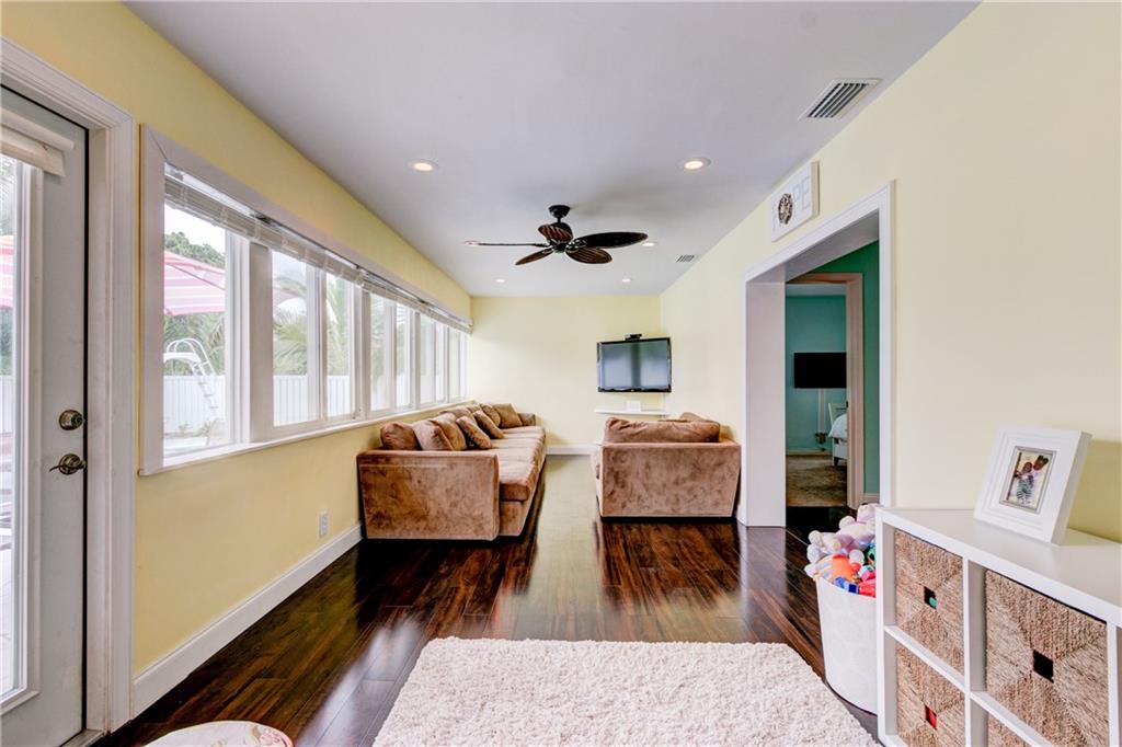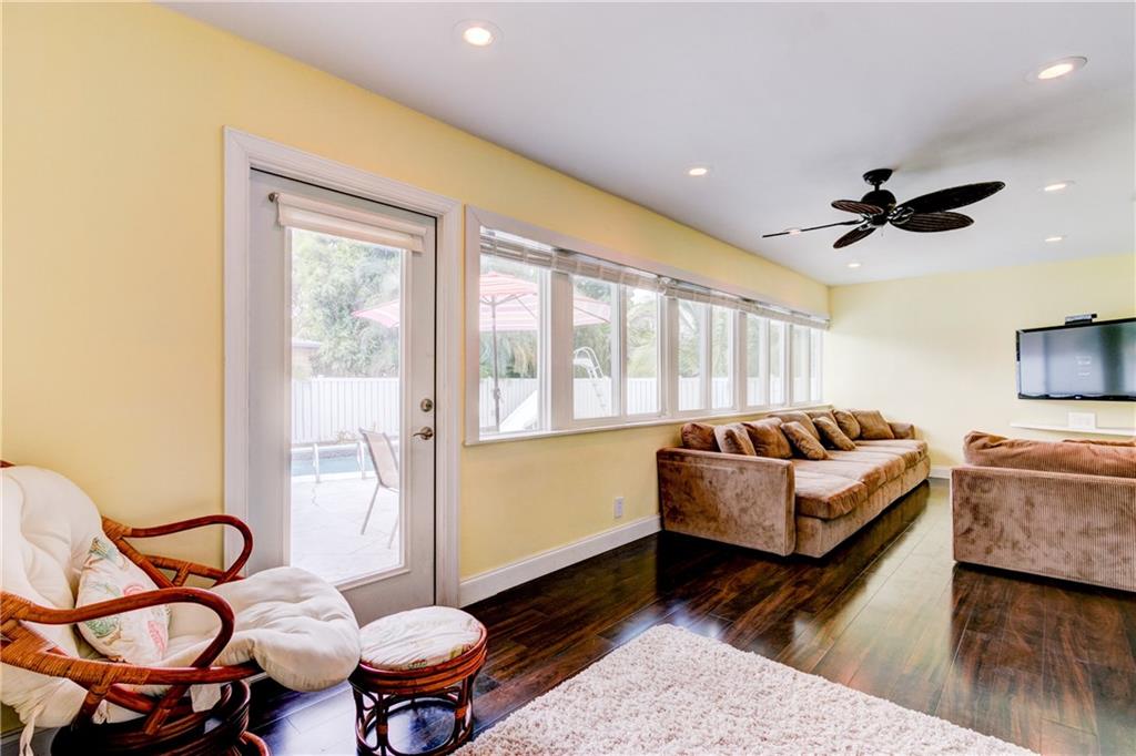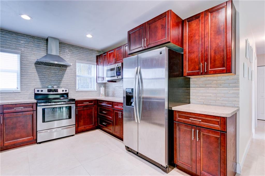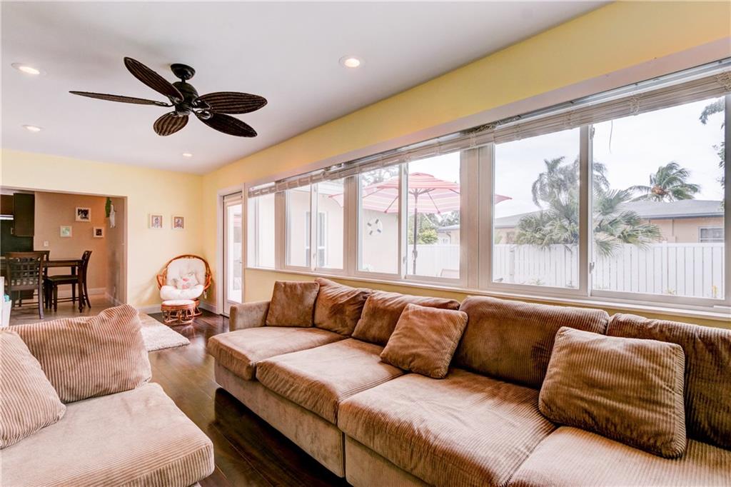 This fabulous home features 4 bedrooms, 2 baths, new impact resistant windows & doors, new A/C, beautiful remodeled kitchen overlooks living & family rooms, stainless steel appliances, tile back-splash, recessed lighting, laminate wood floors in living and family rooms, tile in kitchen and baths, carpets in bedrooms, heated pool, beautifully landscaped yard, 2-car garage, located on an oversized corner lot with privacy fence. A must see!