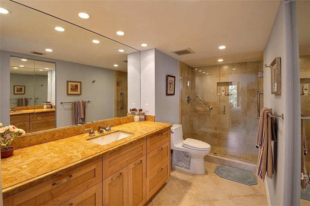 Updated contemporary Penthouse, dockage included, volume ceilings, floor to ceiling impact windows & doors & waterway views over Lake Mayan. The large eat-in kitchen is ideal for entertaining with tremendous storage. 2 Open balconies face the waterway & enjoy tropical breezes from the east. Rich wood flooring & a sleek modern railing afford access to the ensuite bedrooms. The large master suite offers a walk-in closet & lavish bathrm. Walking distance to the beach. Sq ft from BCPA believed accurate.