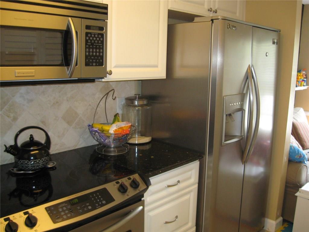 Beautiful upgraded townhome! Kitchen features granite countertops, tumbled marble backsplash, and SS appliances! 1/2 bath has granite counte rtop! 1st floor tiled in oversize 18" porcelain tile set on the diagonal! Stairs, landing and hallway on 2nd floor feature laminate wood flooring. All bedrooms are upstairs with vaulted ceilings! A/C new in 2014! Back yard is fenced and covered in wood decking. 8 x 12 storage room is located in back between units so townhouse do not share any common walls!