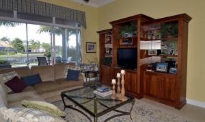 Fabulous location on large premium lot with a great water/golf view. This 2 bedroom + den/study or guest bedroom home is outstanding with many upgrades, including newer stainless steel refrigerator, granite counters, custom closets, upgraded landscape & lighting, heated pool, screened lanai, crown molding, mirrored wall in dining room. Shows like a model home! Membership required. POA is $782/qtr. Remaining club renovation assessment is $159/mnth for approx 9 years.