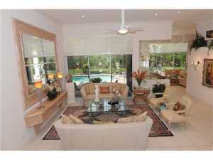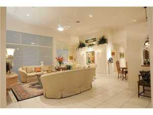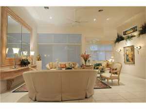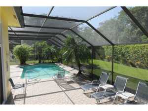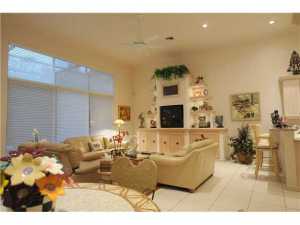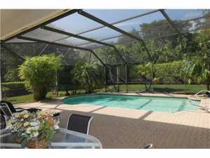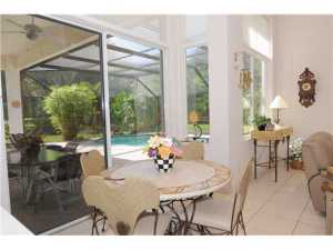 Incredible value, private and serene, model perfect, pristine condition, soaring vaulted ceilings, ceramic tile floors, beautiful wood cabinetry with neutral Corian solid surface countertops, recessed lighting and high end fixtures throughout, fully screened patio, pool, and loggia, pavered patio and motor court.