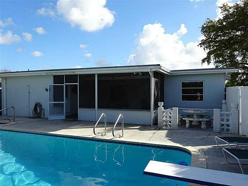 Meticulously maintained corner lot single family home in Hollywood Hills w/great open plan & 1 car garage! New roof in 05/2012. Bedrooms have laminate/pergot floors, walk-in & linen closet in master BR w/ensuite bath w/entrance to pool area. New W/D. A DT alarm system. Enjoy huge screened in patio overlooking 10 ft deep pool w/fenced in back garden that backs up to alley entrance. Huge kitchen great for entertaining w/dining area overlooking pool/patio area. This property shows great and won't last!