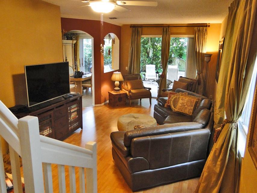 ABSOLUTE BARGAIN*UNBELIEVABLE PRICE*PRICED LOW FOR YOUR PRE-APPROVED BUYER*SELLER ANXIOUS TO MOVE ON*Located in secluded enclave of homes*Volume ceilings,neutral ceramic tile throughout social areas*Versatile great room w/sliding doors to magical gardens/patio*Large glass block treatment in kitchen for natural light*Lots of cabinets,counter space,snack bar*Unique versatile design*Primary bedroom his/her walk-ins*Accordion shutters*Community pool,basic cable,lawn maintenance completes this remarkable find.