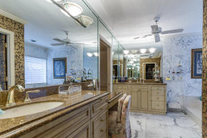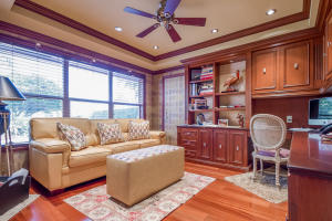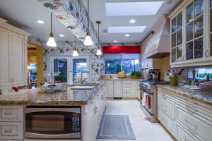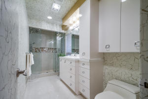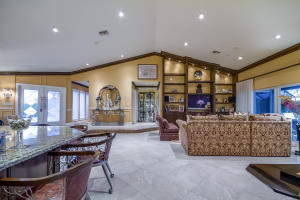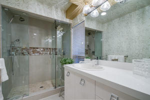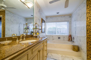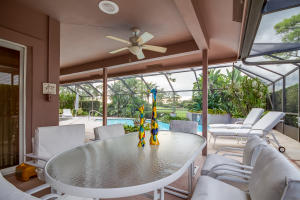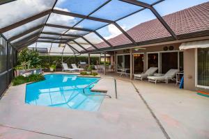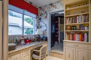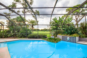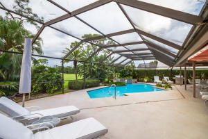 You cannot miss this STUNNING, professionally designed 3 bedroom, 3 bath Boca Woods home! Completely remodeled and designed by a professional interior designer, this home boasts high end wallpaper, lighting fixtures, crown molding, granite top bar in living room, a gorgeous chef's kitchen with 6 burner gas stove, and gorgeous bathrooms with granite, marble and frameless shower doors, custom closets in the bedrooms and a spacious built in desk in the office. This home is set to impress outside as well with outdoor dining under the covered patio, and a private, screened in pool overlooking the Boca Woods Golf Course. Equity Membership is REQUIRED.