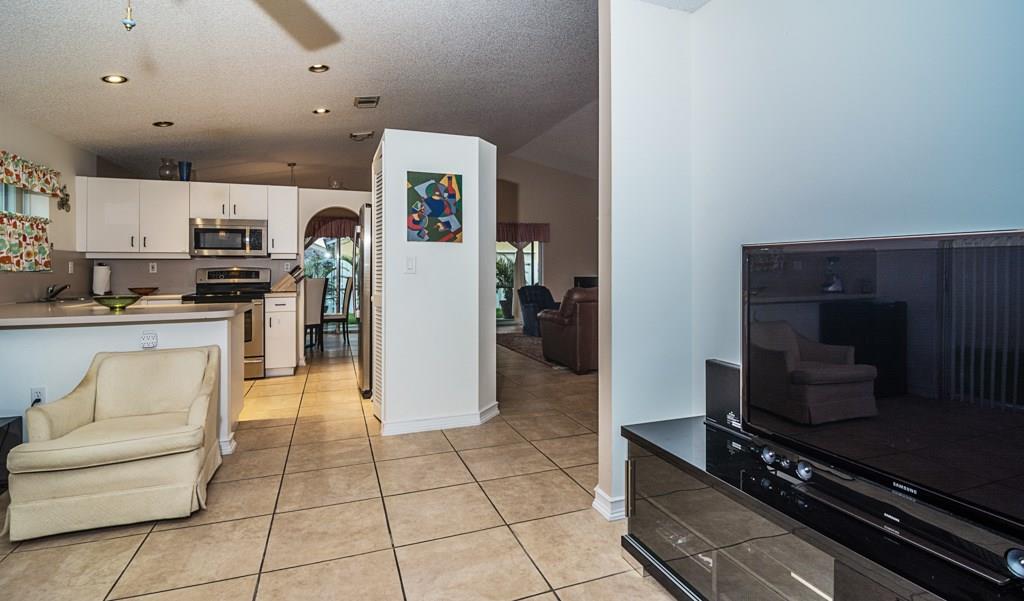 Exceptionally maintained 3/2 Abbey Road Model in Kensington Park. Home features neutral oversized tile on high traffic areas and wood laminate floors in the bedrooms. Freshly painted interior & exterior. Stainless steel appliances, volume ceilings, lots of natural light. All this on a split bedroom layout. Large master suite with walk-in closet. Screened & roofed patio. Beautifully landscaped. Newer A/C. Hurricane shutters. Brand new hurricane grade garage door. Excellent school district. A must see home!