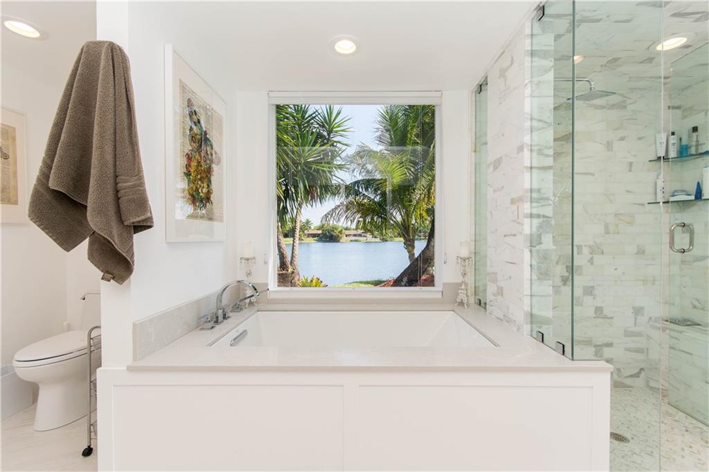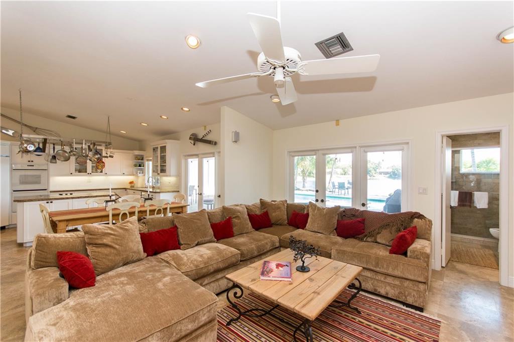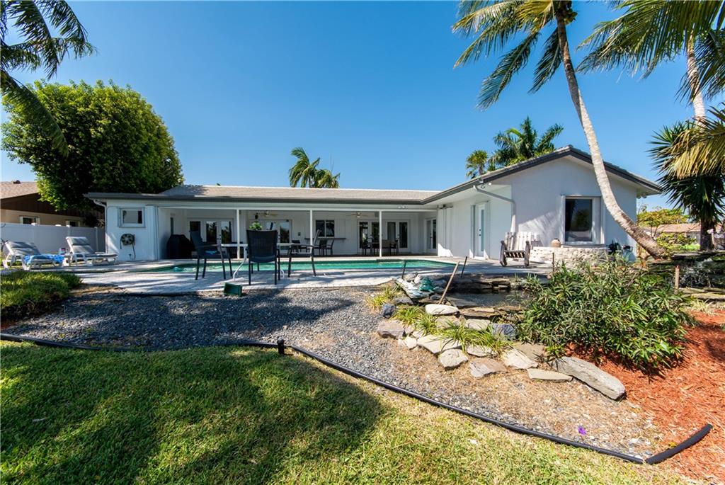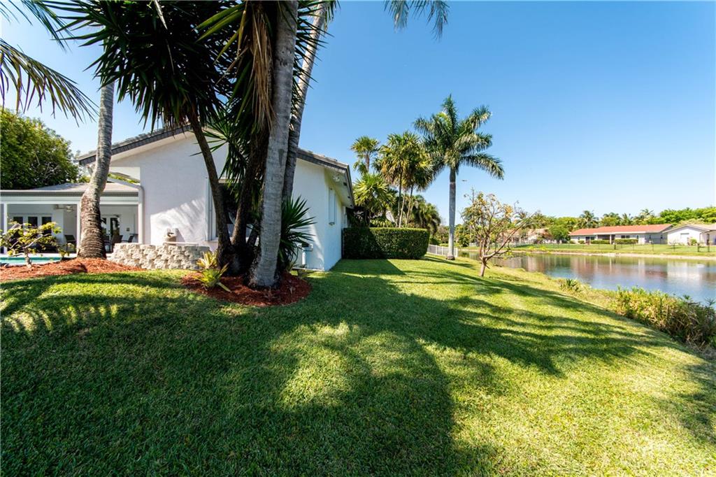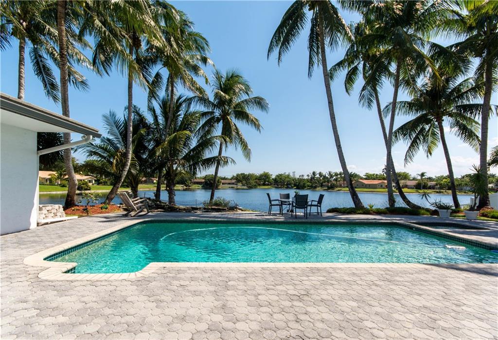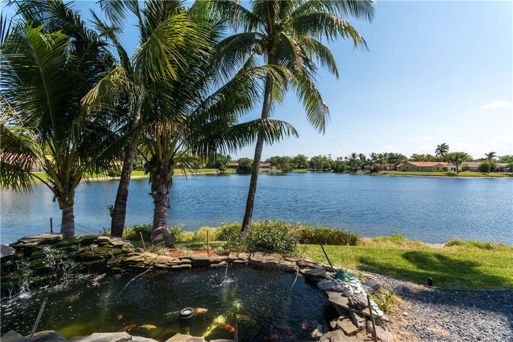 Extraordinary 6 bedroom 4 bath home with panoramic waterfront views in a tropical paradise setting. Expansive open floor plan one story layout with large rooms, walk in closets & great natural light throughout the entire house. Rare large corner lot on a cul-de-sac in Rock Creek. Private backyard, with covered patio, pool & koi pond, all overlooking the lake. With the Southern & Eastern exposures the sunrises and sunsets are exceptional. This home is versatile for entertaining or your personal relaxation!