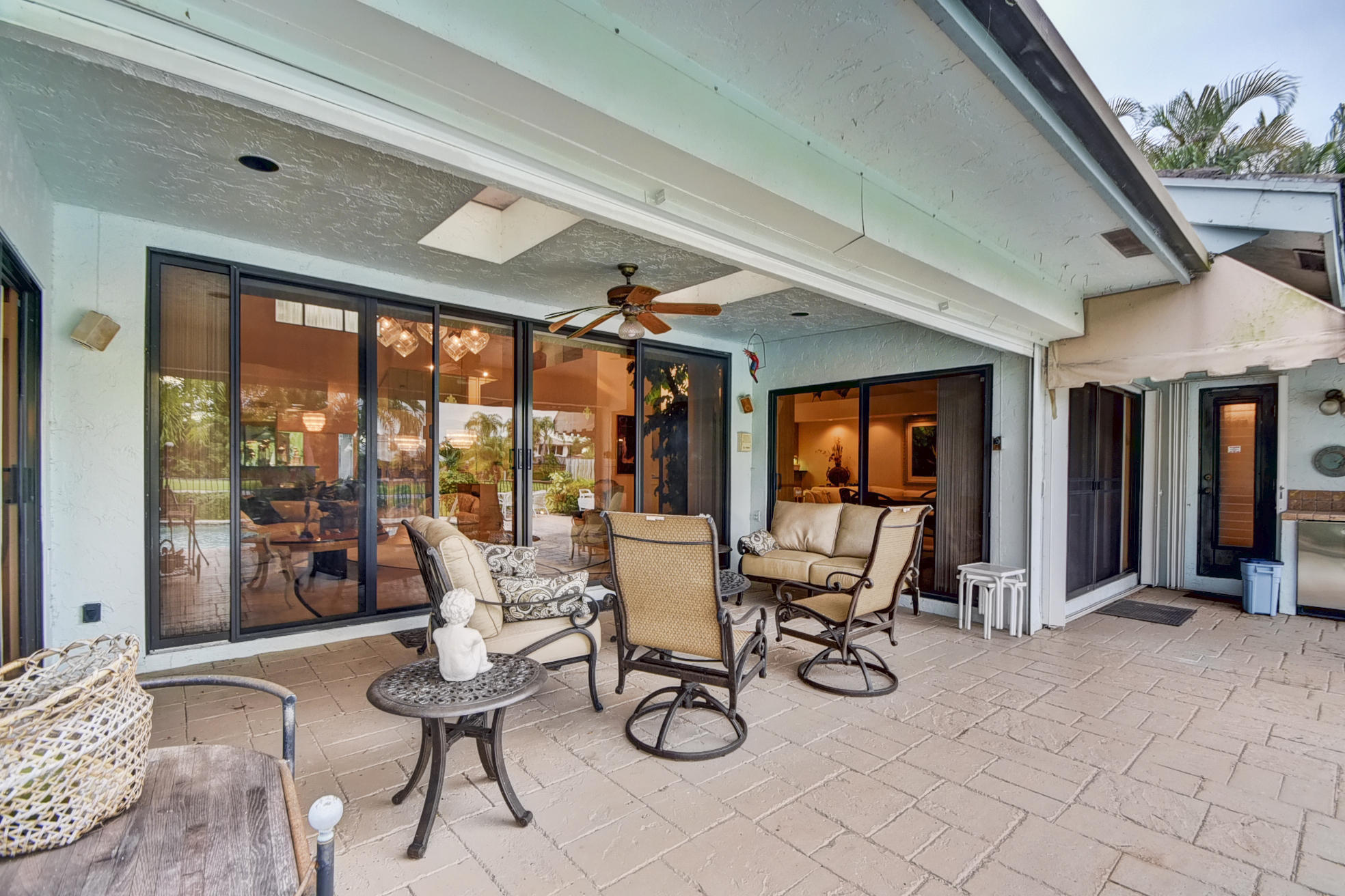 Chapel Creek free standing patio home with western exposure over looking water and the golf course. B Model 3 bedroom, 5 bath double master floor plan. Tiled living areas. Kitchen atrium removed for an expanded and updated kitchen with separate cooking island. Master bathroom area converted into private his and hers separate bathrooms. Custom bar with sink and ice maker. Open pool & patio area with separate covered porch and barbecue area. Hurricane and storm shutters. Furnishings negotiable.