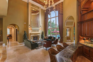 Magnificent Mediterranean custom home built in 2007 with over 7,300 A/C living area and 5BR+Office, 6.5 BA, Loft/Billiard Room and playroom/media room. Located on desirable cul-de-sac street in Breakers West. Lavish master suite with sitting room. Gourmet kitchen with double islands, Wolf gas range & hood, and Bulter's pantry. Temp controlled wine room. Stunning spiral staircase. Loads of custom closets/storage. Extensive ceiling details and crown molding throughout. All hurricane impact windows/doors. Gorgeous loggia w/retractable phantom screens and outdoor kitchen. Heated salt water pool/spa. Breakers West is convenient to downtown WPB, Palm Beach and Wellington equestrian facilities.