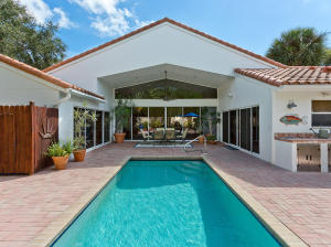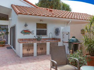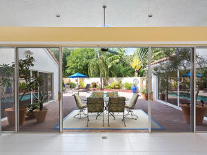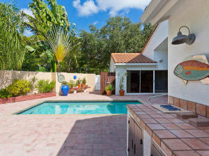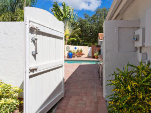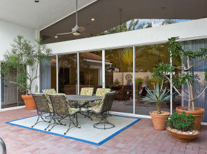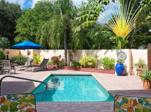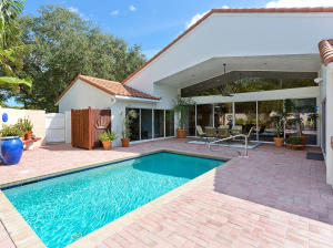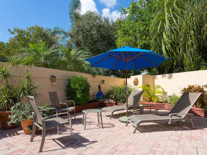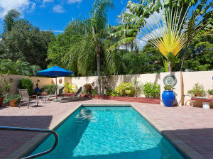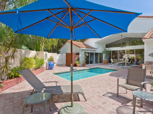 Townhouse is uniquely situated on a giant corner lot with large courtyard and private pool! Only a few such homes exist in the entire community and this is the only one on the market. Huge deck and outdoor area are ideal for entertaining. Interior is renovated bright and clean, featuring an updated gourmet kitchen with granite and marble. Stainless steel GE & Kitchen Aid package with high-quality cabinetry. Features humidistat, AC from late 2010, 3 year old pool heater, roof from 2006, No Carpet, Intercom, Hunter Douglass designer blinds, wet bar and more. Beautifully renovated bathrooms, garage with lots of storage, 3BR/2.5BA floorplan is laid out to maximize entertaining space and privacy - split bedrooms. Beautifully decorated (furniture is negotiable). Great value- do not miss this