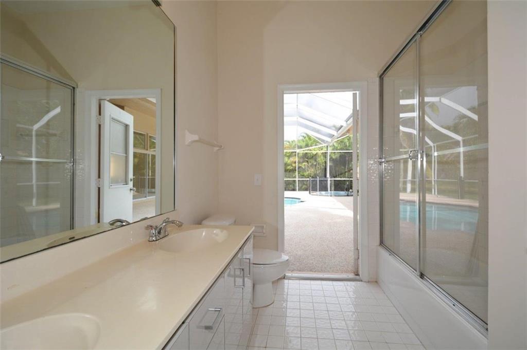 Desirable 4/2.5/2cg single story in guard gated Ridgeview. Soaring ceilings and clerestory windows for open, airy feel. Spacious living/ dining. Family room off kitchen. Breakfast area. Split floor plan. Spacious master. Separate Jacuzzi tub and shower. Adjoining den ideal as office or nursery. Dome screened patio with heated pool and spa. Tranquil canal view. This is a Fannie Mae Homepath property.