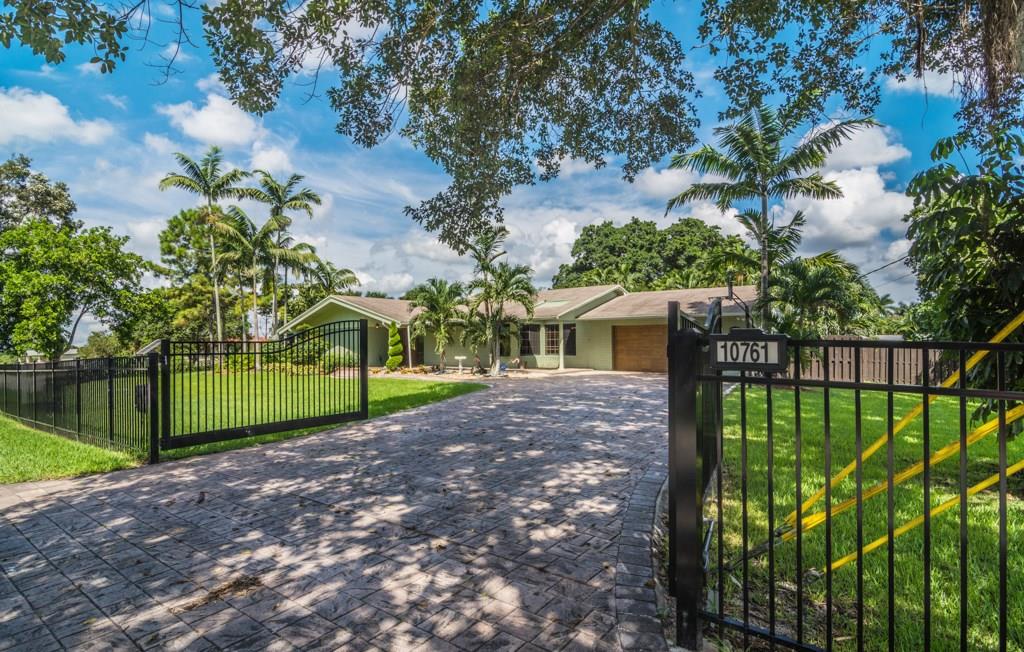 Enjoy living in the country, have a 42,576 sq. foot lot, horses and this beautifully updated home and still be East of Flamingo Rd. Home features 4 bed 2.5 baths, cathedral ceilings, crown molding, impact windows & doors, updated kitchen & bathrooms, heated pool with spa, travertine deck, new 2 zone a/c system. Tile in high-traffic areas. New HWH. Pavers on driveway and front porch. Aluminum fence with automatic gates, security cameras. New s/s with auto timer, extensive landscaping and pond on property.