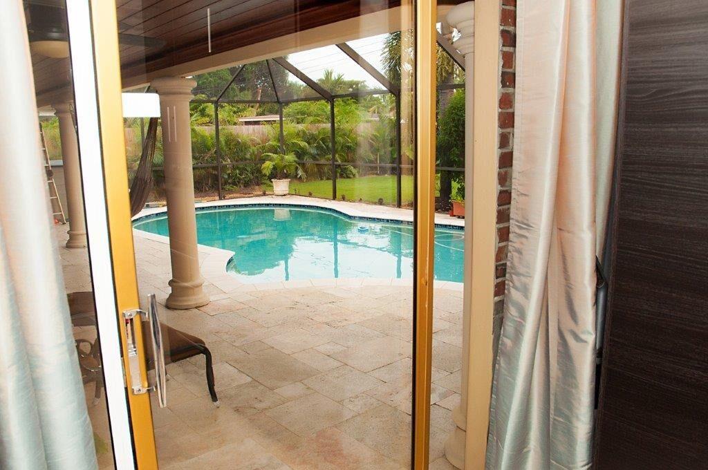 Open and Beautiful floor plan, 4/2 pool home. Bring your family as this home is a split bedroom plan, indoor utility room, laminate floors in bedrooms, porcelain tile in living areas, laundry and bathrooms. Kitchen with stainless steel appliances, grani te counter tops and large breakfast bar. Almost all rooms overlook the pool with two cabana baths. Patio has gorgeous and well maintained wood over hang with salt water pool filter. Private lot, large circular driveway, very clean home.
