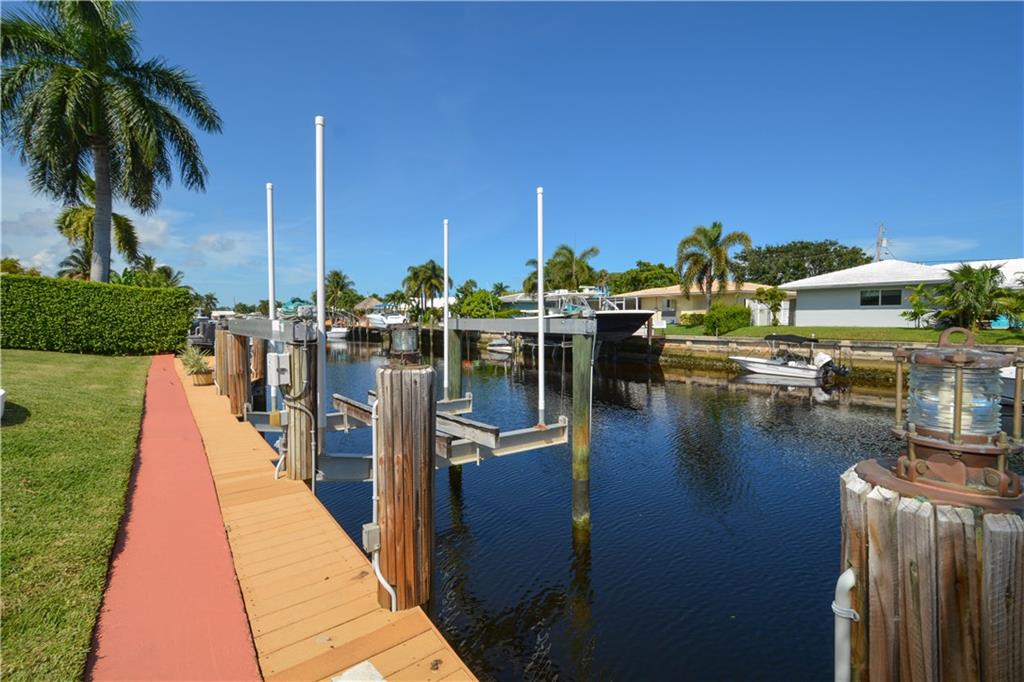 Fantastic 3 bedroom, 2 bath, 2 car garage pool home on 80 feet of ocean access water with 16,000 LB boat lift. The large and open split bedroom floor plan make this a great entertainment home. Tile and wood floors throughout. Kitchen has been updated with wood cabinets, stainless steel appliance and granite counter tops. Master has been completely updated. Beautiful pool deck with large yard and east exposure perfect for enjoying evenings outside. This home is in excellent condition and won't last long.