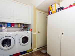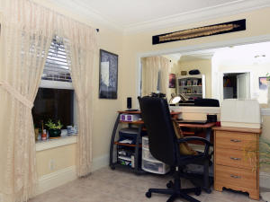 Clean, Clean, and upgraded! Beautiful 3/3 with a den/office downstairs, partially converted garage for utility, and extra storage. Renovated full bath down. Kitchen has granite counters, pass thru bar, and all newer appliances. Dining area has a beautiful custom mirror! No carpet anywhere - tile, laminate, and 8'' baseboards. Chair rails galore, and coiffure walls abound. Upstairs you enter an area with built in book shelves, and more ''nooks''. The master closet has built ins as well, and new shower tile. The 2nd bath up has also been redone. More amenities include brand new roof, and exterior just repainted (HOA covers!). Also, accordion shutters, screened patio, fenced front porch, and a security system.Pride of ownership shows here!