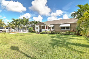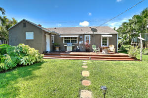 Rare Find! Charming highly-upgraded 3Bed/2Bath Historic home with an incredible custom-built Tropical Tiki entertainment backyard. This Hollywood residence occupies 1,263 sf with dual front and back street entry access. From first sight, you are attracted to the friendly and inviting covered front porch. Inside, you are welcomed by the beautifully restored 1948 hardwood floors throughout the expansive den and family room. Natural light fills each room containing recently installed wood blinds and outside metal window awnings to conserve cool temperature and desired privacy. The kitchen is spotless and updated from top to bottom with porcelain tile flooring, neutral granite countertops and ceramic tile backsplash, white wood shaker cabinetry, and Frigidaire stainless steel appliances and op