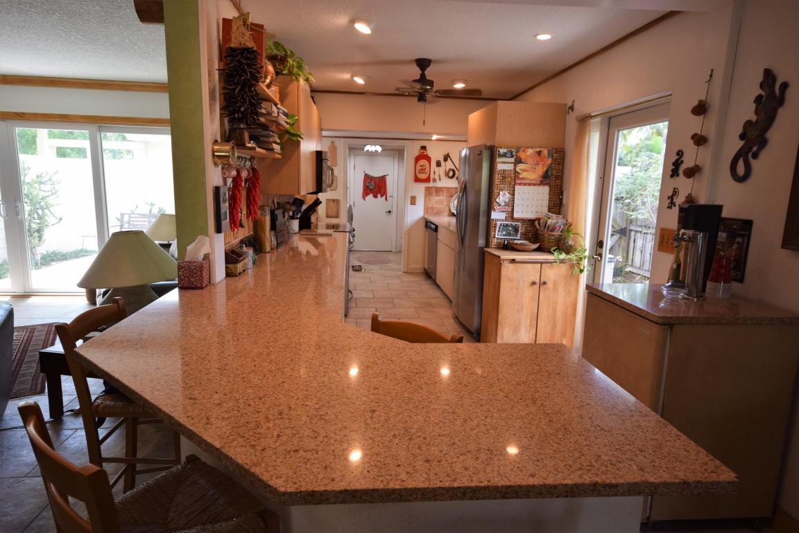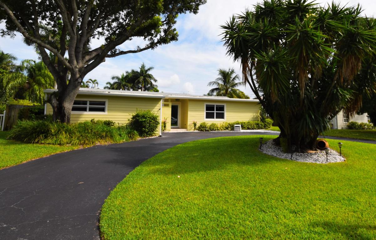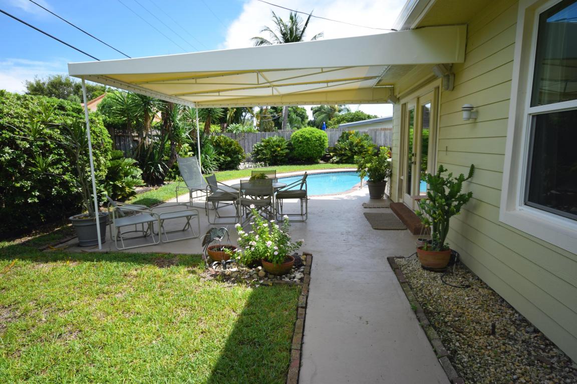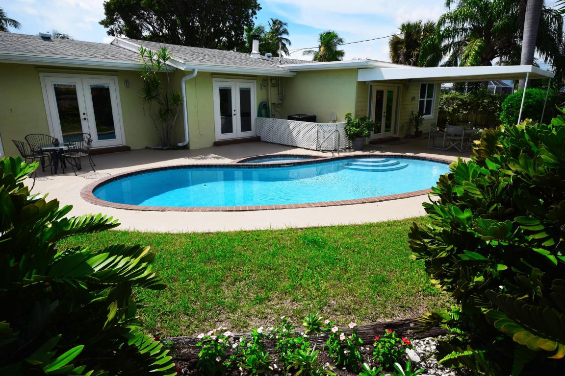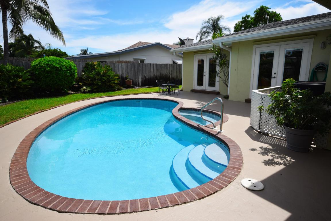 Lovely 3/2 pool home in east Boca. Well-cared for home with charming upgrades, roomy bedrooms, plenty of storage, and wood burning fireplace. Porcelain tile throughout kitchen and living areas, & bamboo floors in the bedrooms. Roomy master bedroom features a large walk-in closet and on-suite bath. Kitchen offers quartz counter tops, stainless steel appliances, plenty of cabinet and counter space, recessed lighting, and a large bar sitting area. The private, fully fenced backyard is great for entertaining and offers a covered patio, pool/spa, and a lovely ocean breeze. Additional courtyard sitting area off the front of the home. Home is wired for surround sound. Hall bedroom has a Murphy bed. Great curb appeal and nice circle driveway with plenty of parking for multiple cars.