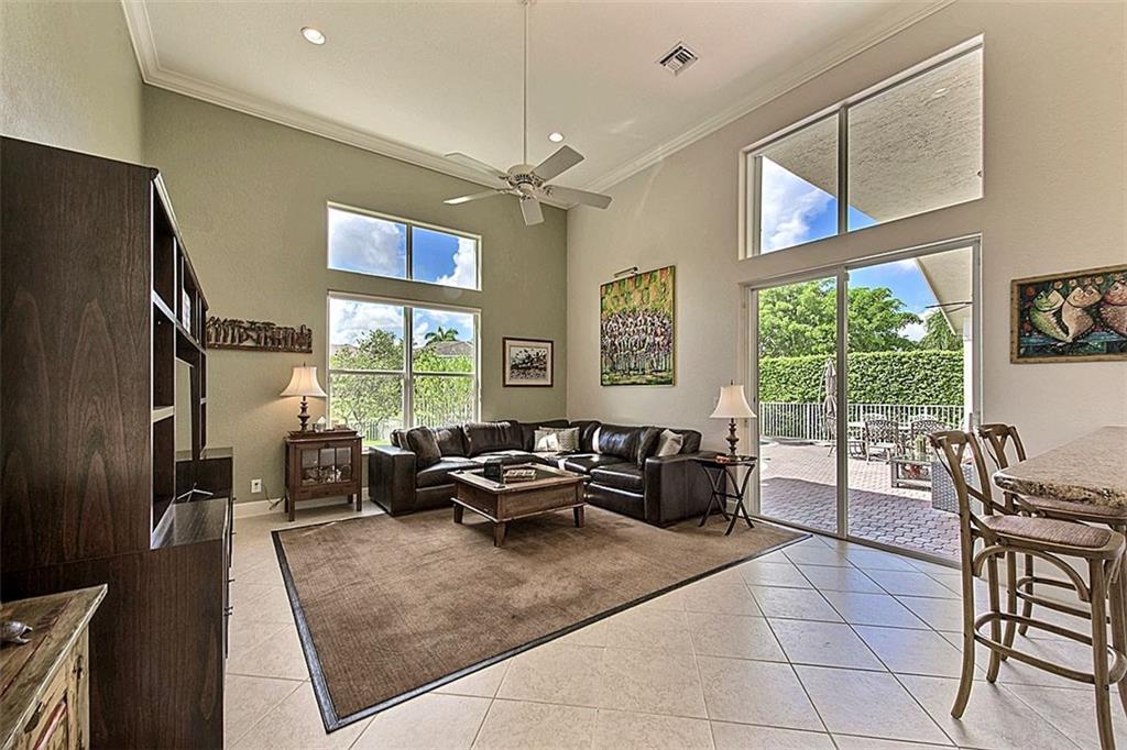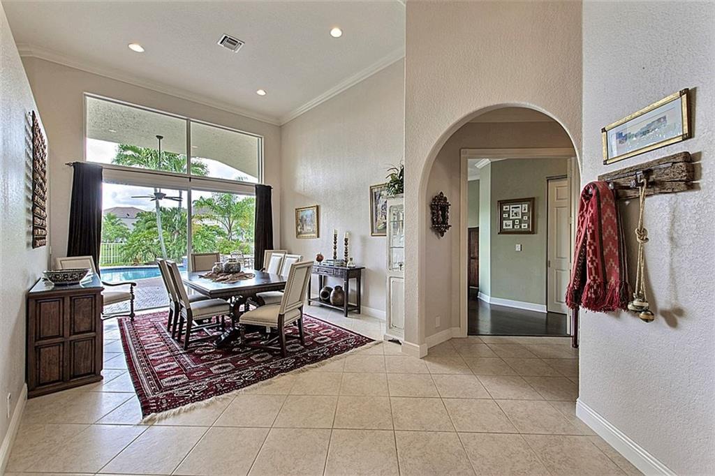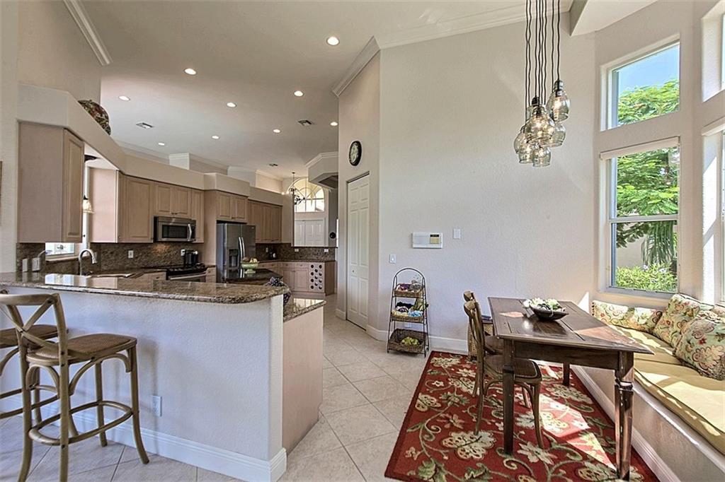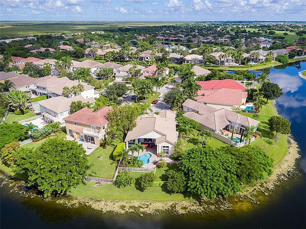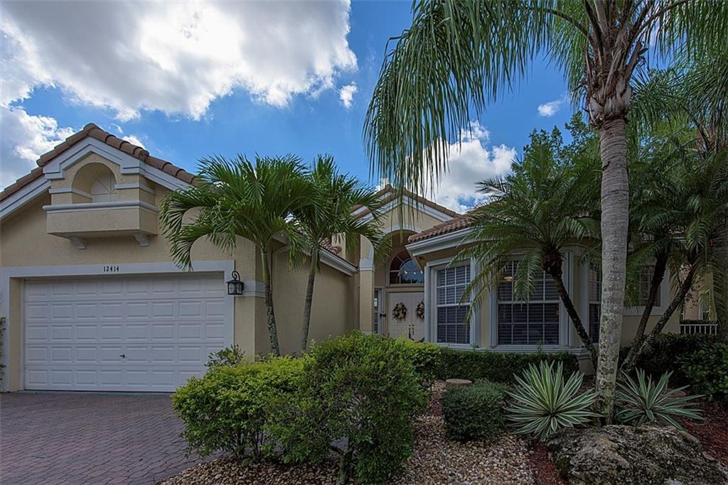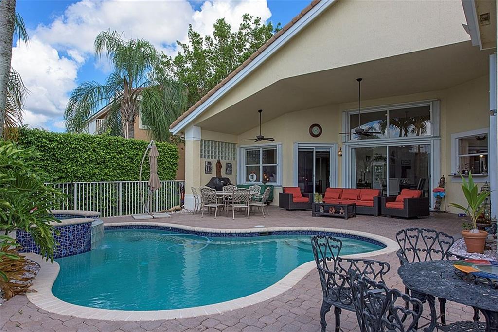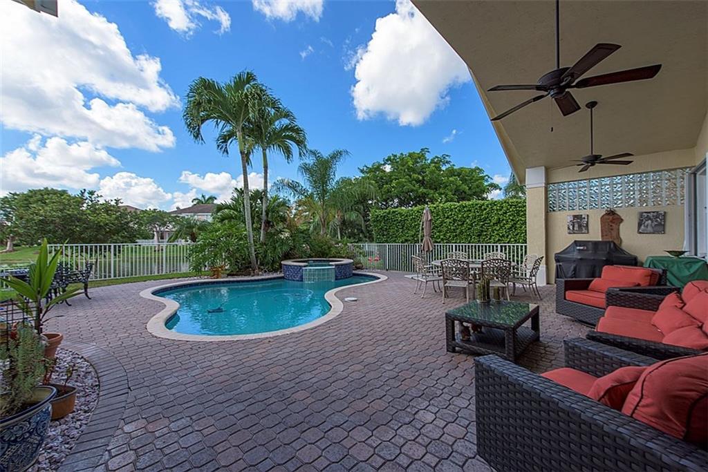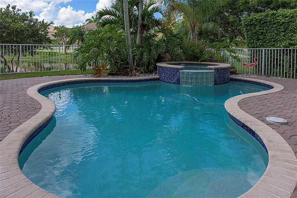 Paradise found. Cul de sac & park-like private tropical backyard on wide waterway, expansive lake & golf course views of 16th hole. Newer roof, A/C, accordion shutters, stone look tile on diagonal, & wood floors. Large updated kitchen, stainless steel appliances, abundant 42" cabinets & granite counters. Breakfast nook & bar. Updated baths, crown molding thru-out. Split plan, large family room. Paver drive & patio surround pool & spa. Serene, full fenced oasis.