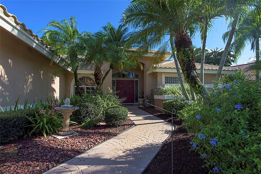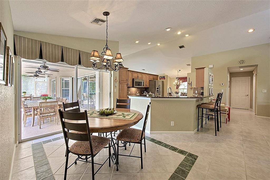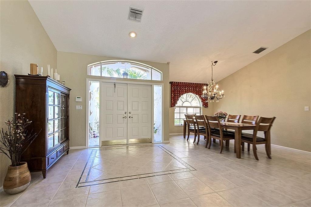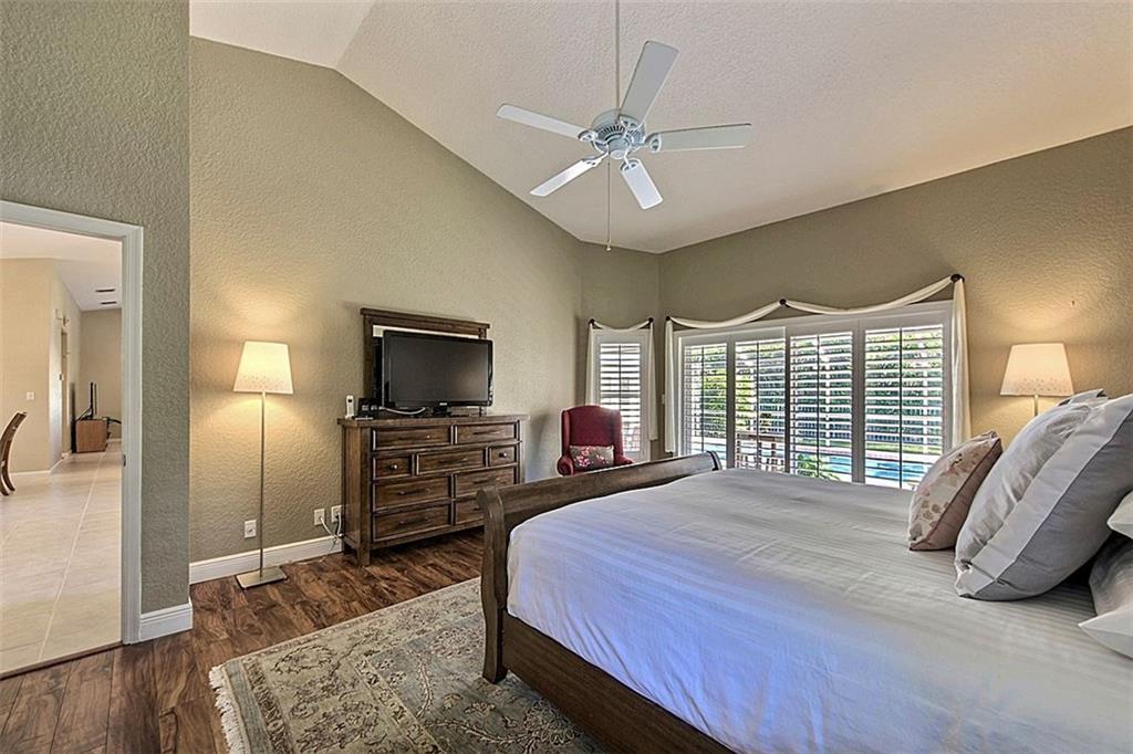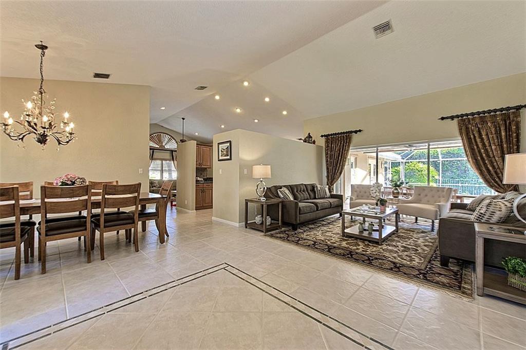 Picture perfect triple split bedroom; true 5 bedroom home. Roof replaced in 2012. Cathedral & vaulted ceilings & palladium windows provide architectural interest. Remodeled kitchen & bathrooms. Stonelook tile floors & plantation shutters. Tasteful paint tones throughout & knockdown textured walls & ceilings. Private corner lot, fully fenced & domed scr pool with new gem coat. Large overhang area for entertaining. Hurricane shutters. American Home Shield Warranty transferred at no cost to buyer at closing.
