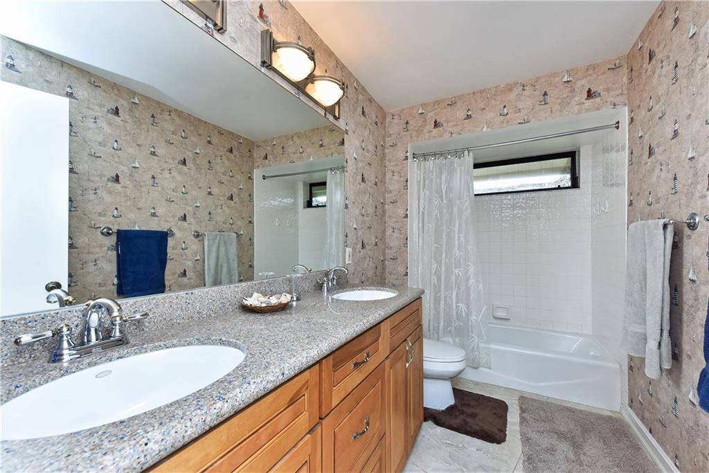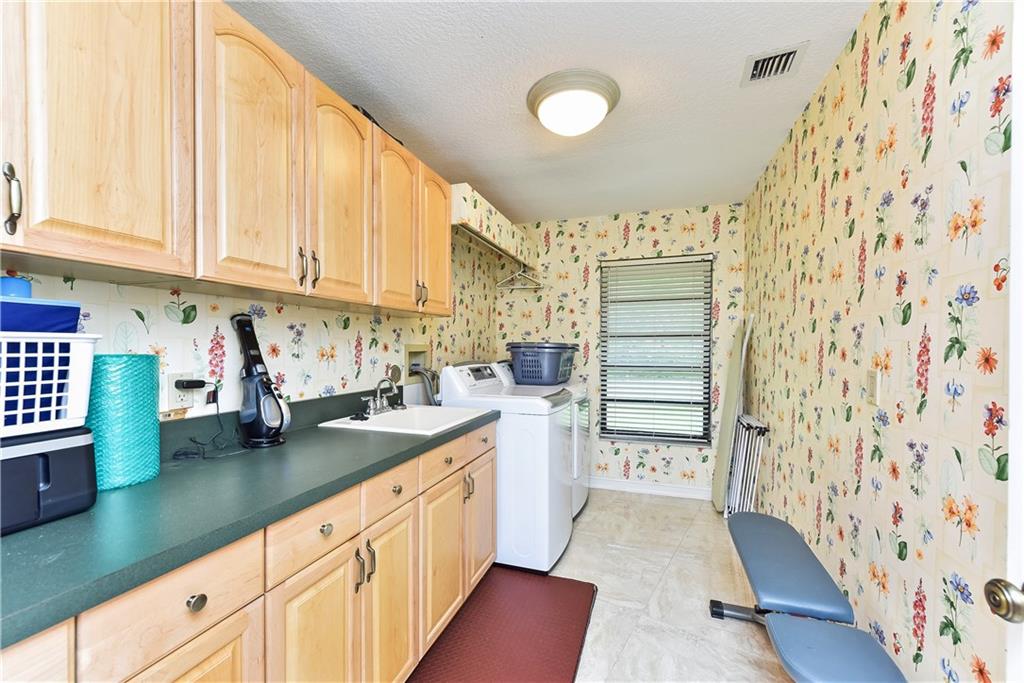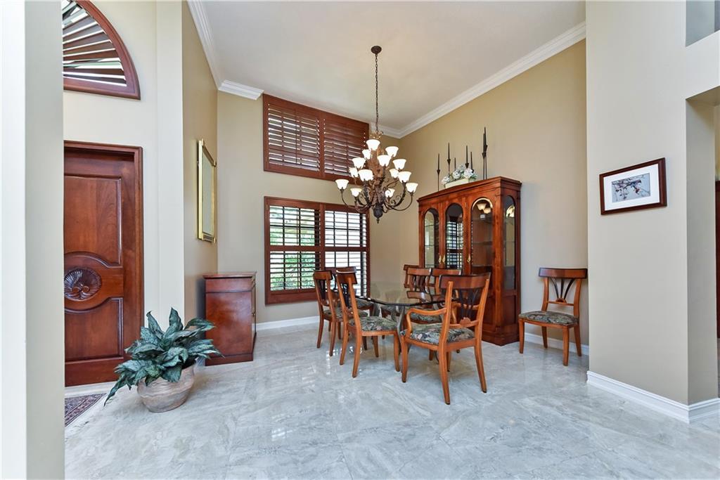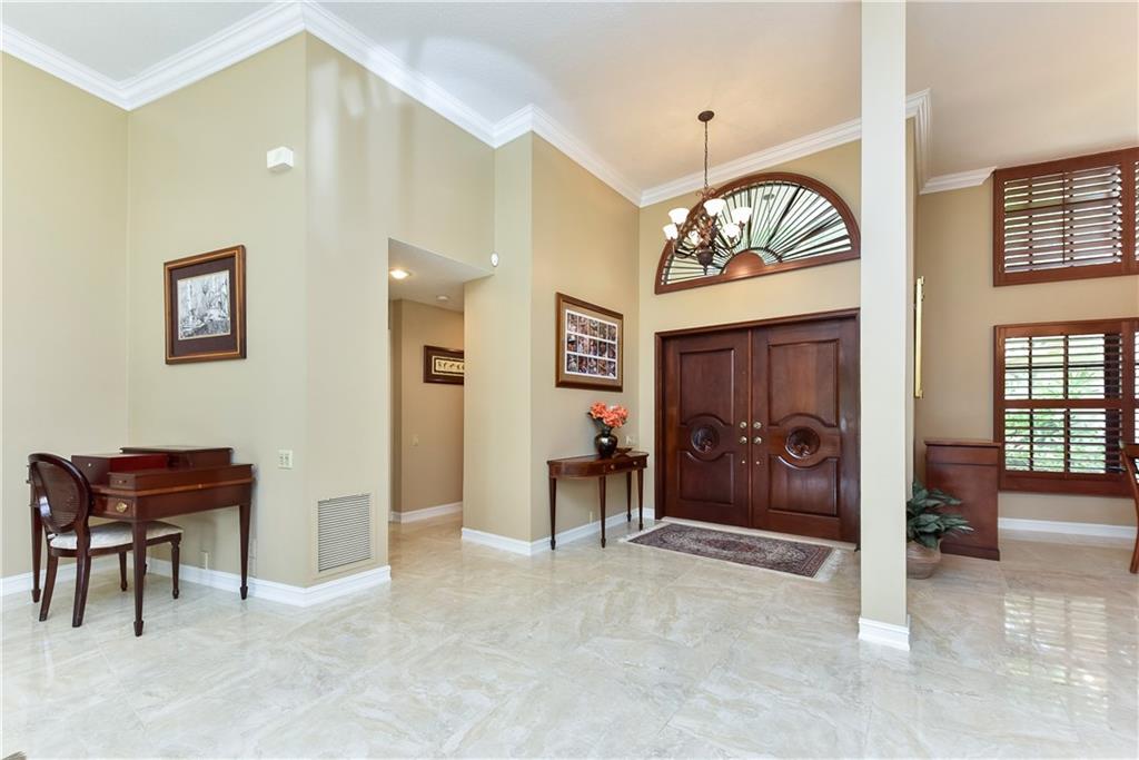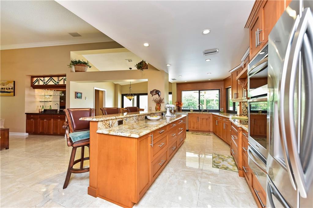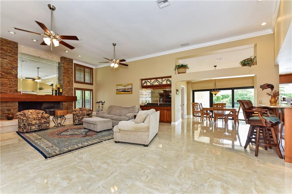 This completely remodeled home features: 24" marble-look flrs thru-out main area; built-in wetbar w/granite & FPL w/mahogany mantle, stacked stone & marble hearth; plantation shutters & crown molding; kitchen w/maple cabinets, granite & built-in LG appliances; spacious master w/custom closets; master bath w/limestone flr, frameless & marble shower, Jacuzzi tub & private bidet & commode; numerous impact windows & '07 roof; stone paver patio, outdoor kitchen, stunning yard (15+ fruit trees!) & open pool!!