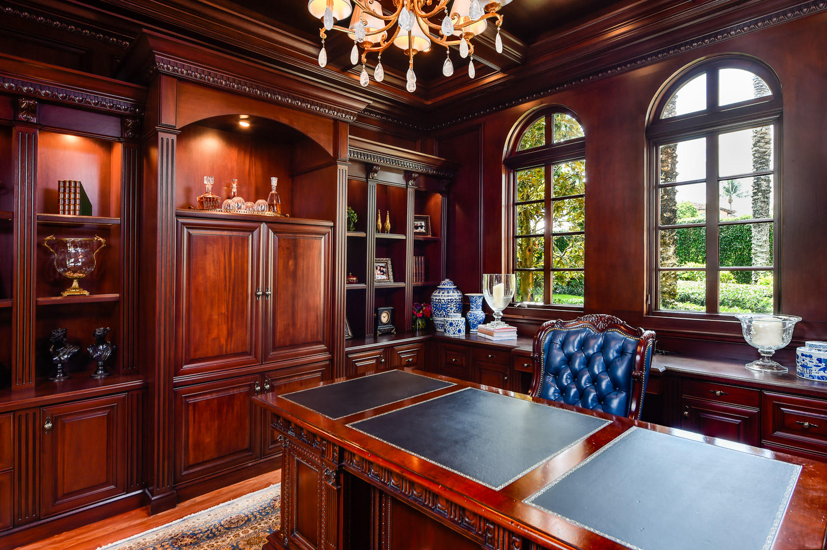 Beautiful two story Estate Section Mediterranean with rich detailing throughout. 6BR/7.5BA plus library, family room, and elegant living room with fireplace. Gourmet eat-in chef's kitchen, wine room, butler's pantry, breakfast room, and formal dining room. Lush outdoor living spaces include swimming pool, fountains, and loggia with summer kitchen.