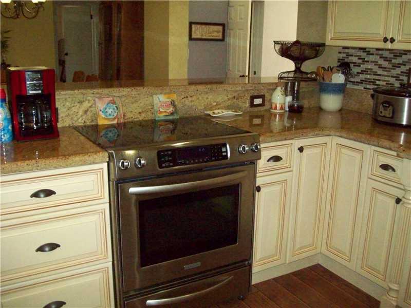 Beautiful and updated 4 bedroom POOL home with one car garage. Amazing designer kitchen with modern backsplash, granite counters, stainless appliances. Extra oversized family room looks onto the beautiful pool area. All wood upgraded floors, split bedro om from master. All bedrooms have walk-in closets. Modern bathrooms with glass shower doors, Canopy on pool deck and accordian shutters. Crown molding. Wood Fenced yard. Gas hot water heater and dryer. NO HOA. This home is pristine, move-in ready.