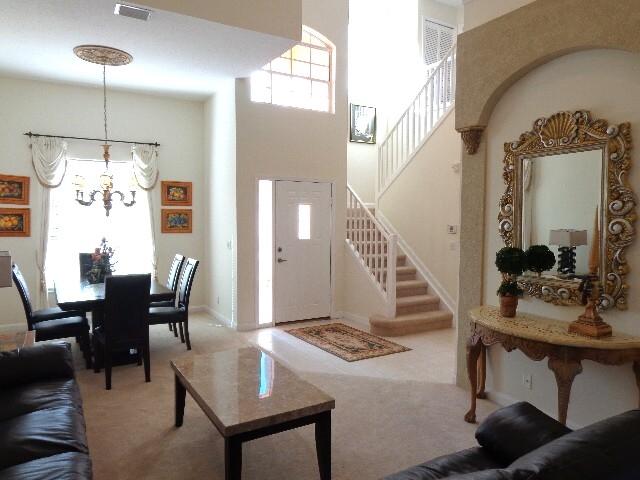 LOCATION, LOCATION, LOCATION!!! Gorgeous water AND golf views from this move in perfect single family home. Convenient to the main gate AND down the street from the club! The views are amazing! Light and bright home, open floorplan, lots of upgrades, screened in patio with private pool! Master bedroom is on the first floor and 2 guest bedrooms with loft upstairs. Awesome location...low price...move in ready...what more could you want???