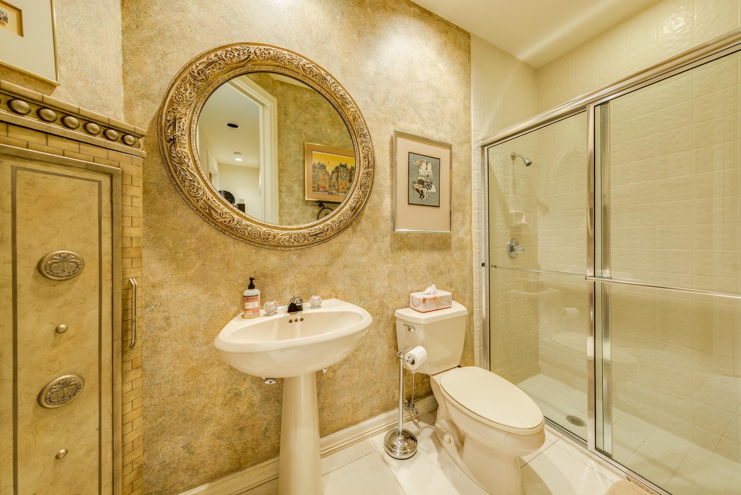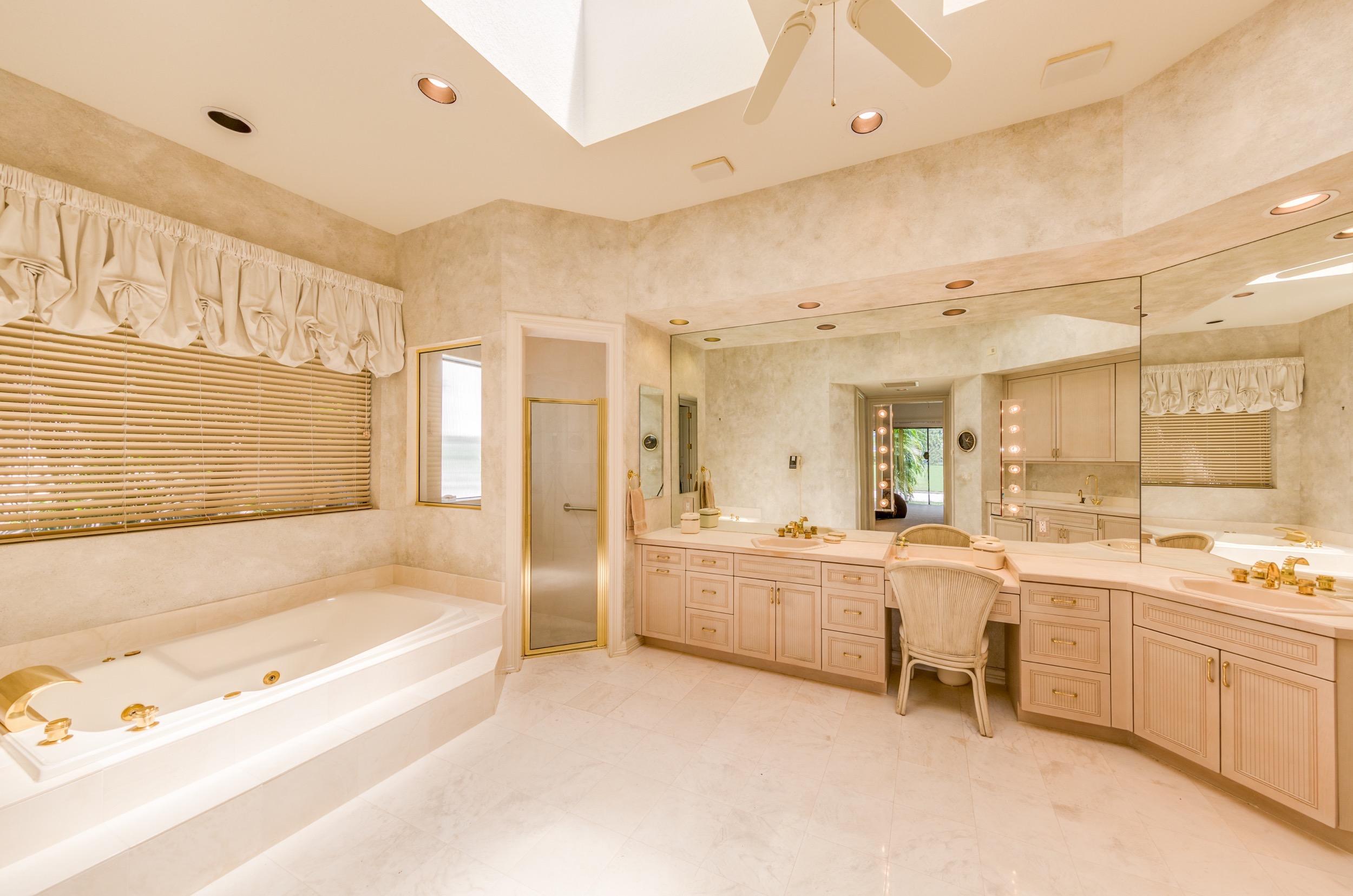 OPPORTUNITY AWAITS! The possibilities are endless with this architecturally appealing property. This home offers immense value and can afford as much or little renovations as desired. Upon entering the home, you are welcomed into a dramatic great room that is bright and spacious. The kitchen's layout is a rare find and has limitless possibilities. The grand master suite on the main level, offers long golf course views, an attached screened-in patio, his and hers oversized closets and an enormous master bath that is filled with light. A private executive office with built-ins greets you on the opposite side of the property. Down the hall is an additional bedroom and full bath. Upstairs there are two bedrooms both en-suite with large walk-in closets in addition to a second laundry room.