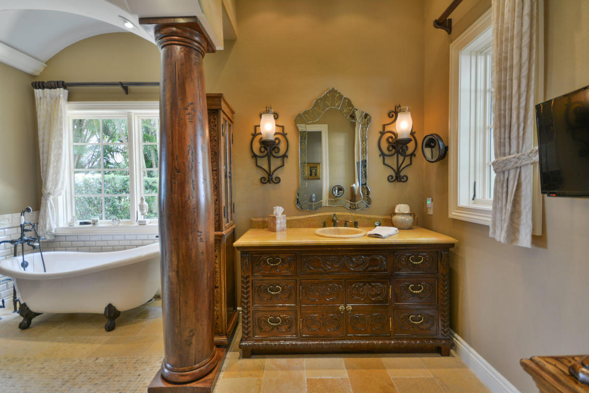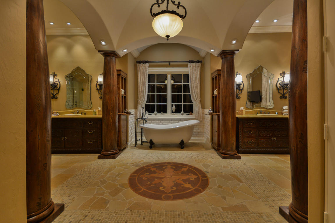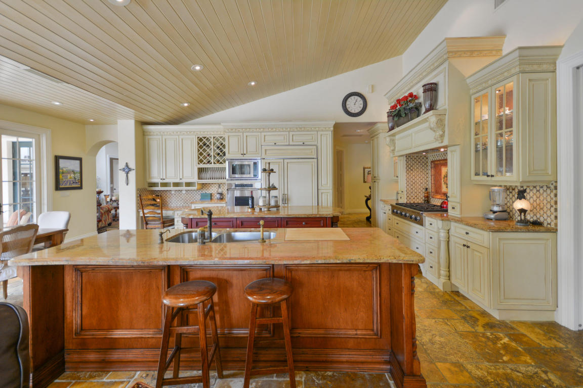 Absolutely spectacular 5 bedroom, 4.1 bathroom waterfront home. No expense was spared in the finishes of this home, completely redone inside and out. All rooms located on the first floor except for the custom wood octagon shaped office and marble half bath. Gourmet chef's kitchen with all new Dacor Cooking Appliances; warming drawer, propane gas 6 burner stove with griddle, subzero side by side refrigerator; Raised Panel Kitchen Cabinet Doors; 2 large floating islands; Granite counter tops; and low voltage under counter lighting. The large master suite features wool pattern carpet, television sound system, extra-large walk in closet with custom maple cabinetry, and paneled wall with hidden door leading to 2nd floor office.