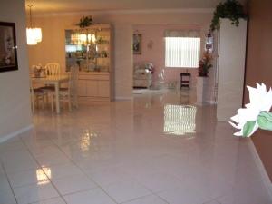 Beautiful single family home on the golf course. Brand new roof (Sept 2016). 2/2 with 1 car garage. Remodeled kitchen. 16'' tile floors on the diagonal in living areas. Big family room. Living room has 2 solar lights and crown molding. Newer garage door. Attic has ladder. Accordian hurricane shutters. Full size washer/dryer & laundry sink in garage. Rear screened porch has tile floor & vinyl windows, overlooking golf course. Front screened porch has Mexican tile. Community amenities include: pool, tennis, 18 hole executive golf course, bocce, miniature golf, fitness room, guard gate. Low HOA fee. Community is convenient to the airport, I-95 and Turnpike.