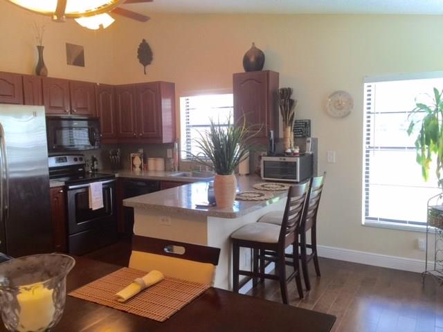 You will love this impeccable home with its new rich looking wood floors! Updated kitchen. Spacious home with split bedroom floor plan. Living room has neutral tile floors. No carpet in this home. Double sinks in the master bathroom. Huge fenced corner lot. Screen patio. Hot water heater new June 2016. Roof new in 2006 and a/c in 2010 The location has so much to offer. Steps to the civic center and Westbridge community pool. Close to the library. Walking distance to so much. A must to see.
