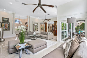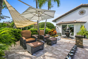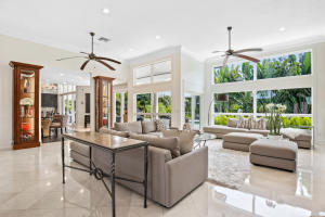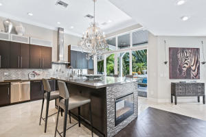 WOW!!! This is a spectacular one of a kind custom home. 4 bedroom 2 1/2 bath on one floor. Recently remodeled with exquisite details throughout. Very open, bright modern floor plan. New kitchen with top of the line appliances, quartz counter tops , stainless steel appliances , two dishwashers in the main kitchen. Marble and porcelain tile throughout. There is also a second kitchen near the master bedroom which can be used as a service kitchen for entertaining or a kitchen for master bedroom convenience. Master bedroom has a magnificent view with fountains and tropical landscaping , also features beautiful wood floors and spacious bathroom and closets. New hurricane glass windows throughout. Fourth bedroom is set up as an office with beautiful built ins but could be turned back to