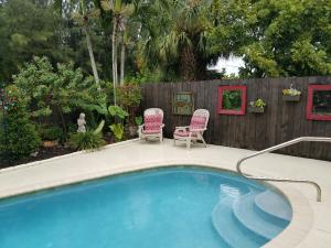 Located on a cul-du-sac street this 3bd 2ba meticulously maintained pool home has 2 car garage, renovated kitchen with beautiful cabinets, granite countertops & center island kitchen. Home has vaulted ceilings with plenty of hi-hat lighting.Tile on the diagonal, master bed. with cherry wood flooring and plank vinyl in other bedrooms.Both baths have been recently redone with double sinks & glass door shower in master & new vanities & bath in 2nd.Pool is heated & deck is redone.Relax in the peaceful garden and fenced yard that backs to a preserve with no backyard neighbors. Property is completely fenced in and has a screened patio, hurricane accordian shutters all around. Roof only 10 years old & laundry room is inside.Fox Hall is a gated community close to everything-See Supplement.