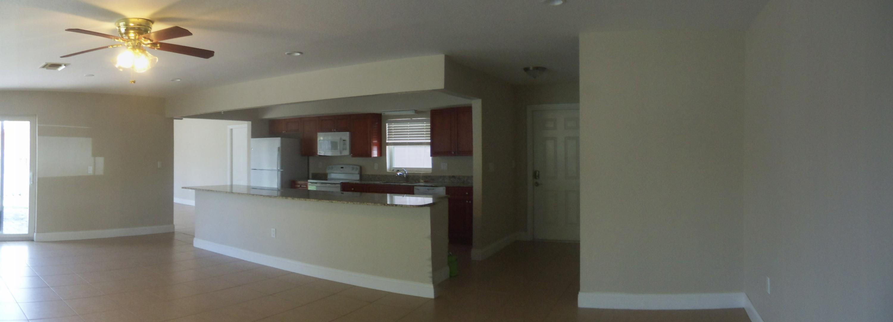 3/2 with renovated kitchen with huge island overlooking spacious living room and large dining area off the kitchen. Great for entertaining. Master bedroom with en-suite bathroom with separate storage & closet.Impact windows,doors and roof installed in 2012. 1 1/2 car garage with driveway that can accommodate parking for 4 vehicles. Owner must occupy the home.