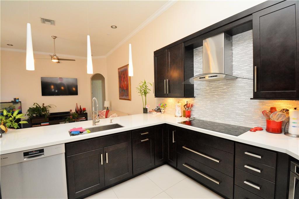 SPECTACULAR INSIDE AND OUT! COMPLETELY REMODELED KITCHEN WITH ITALIAN CABINETRY IN A MODERN STYLE, ALL NEW STAINLESS STEEL APPLIANCES, COMMERCIAL GRADE FAUCET AND NEW SINK, DECORATIVE GLASS BACKSPLASH AND GORGEOUS QUARTZ COUNTERTOPS. NEW PORCELAIN FLOORING THROUGHOUT COMMON AREAS AND MASTER. OTHER BEDROOMS HAVE WOOD FLOORING. HUGE YARD WITH OVERSIZED TRAVERTINE PATIO WITH POOL AND SCREENED ENCLOSURE.