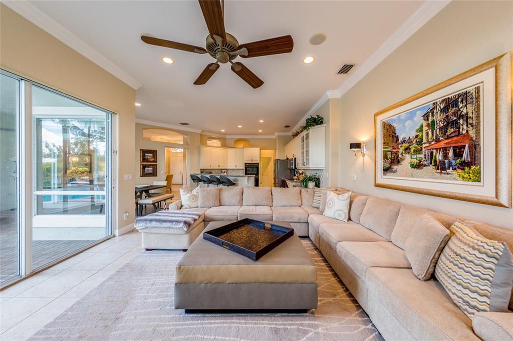 Wide waterfront pool home, spotless 5 Bedroom 4 Bath 1 story. Fantastic layout accented by the pool & waterfront views. Dramatic foyer entry w volume ceilings. Large formal dining & living rooms, spacious family room, big updated wood & granite kitchen w cafe nook that opens to the lanai. Super sized master suite w sitting area, walk-ins, adjacent 5th bedroom/office/den. All bedrooms are large. Lots of extras & accents. Fox Ridge is small, upscale Parkland community w A rated schools.