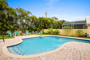 Stunning, beautiful and tastefully remodeled 3 bedroom,2 bath pool home in The Breakers West. For those who need it already done, this home has it all, new roof with vaulted ceilings, new kitchen with granite counters and stainless steel appliances,new bathrooms, porcelain floors in living areas and new carpet in bedrooms. New A/C unit, garage and rear sliding doors. Pool was resurfaced and has new equipment. Nice soft pastel paint colors adorn the walls with moldings too numerous to describe. Enjoy entertaining by the pool and in the private backyard. THIS NOME IS A MUST SEE.Washer, dryer and mirror in 2nd bathroom do not convey. Chandeliers in dining area and kitchen along with entrance light will be replaced.