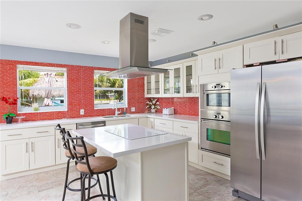 Gorgeous waterfront home totally renovated with dockage and ocean access. This cul-de-sac house comes furnished with 3 large bedrooms 2 beautiful bathrooms. A large opened kitchen with stainless steel appliances, a cooking island and a beautiful view of a large canal. Marble floors and laminate woods in all the bedrooms. Fenced in tropical backyard with a heated above ground pool and a covered sand Tiki area. Comes with a 65 feet deep water dockage area. Near major highways, airport, beaches & marinas.