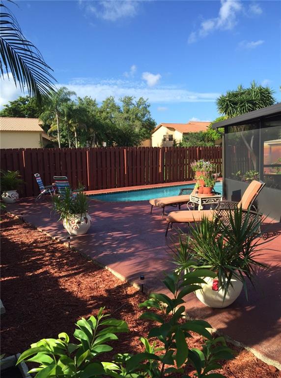 Clean, remodeled home, in nice zero lot line community. New kitchen cabinets, New granite counters, New stainless steel appliances! New wood laminate floors, New A/C! New garage door! Big screened in back patio, large pool patio deck, fenced and private back yard. Very low maintenance fee.