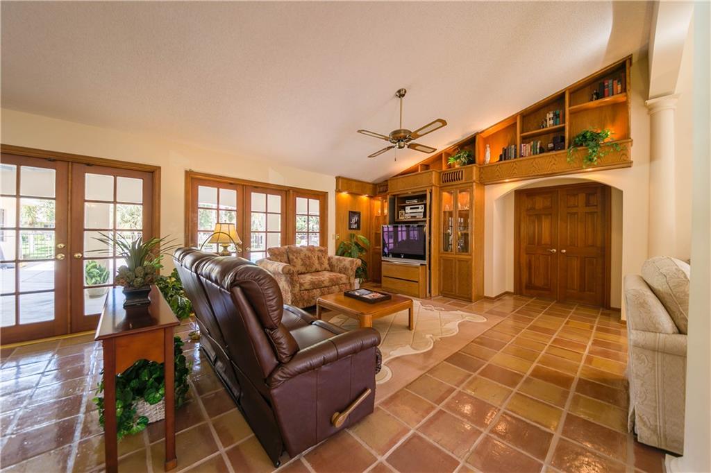 Beautiful 1.09 acre estate with an amazing back yard. A perfect home for entertaining! The great room features a built-in wet bar & high vaulted ceilings. Remodeled kitchen with gorgeous wood cabinets, granite counter tops, pot filler over the stove, double wall ovens, center island & built in pantry. The 2nd bedroom is perfect for an in-law suite (28x13 with a private bathroom). 2008 tile roof! 4 a/c units & paver circular driveway. Large covered patio with built-in wet bar, refrigerator & fenced pool.