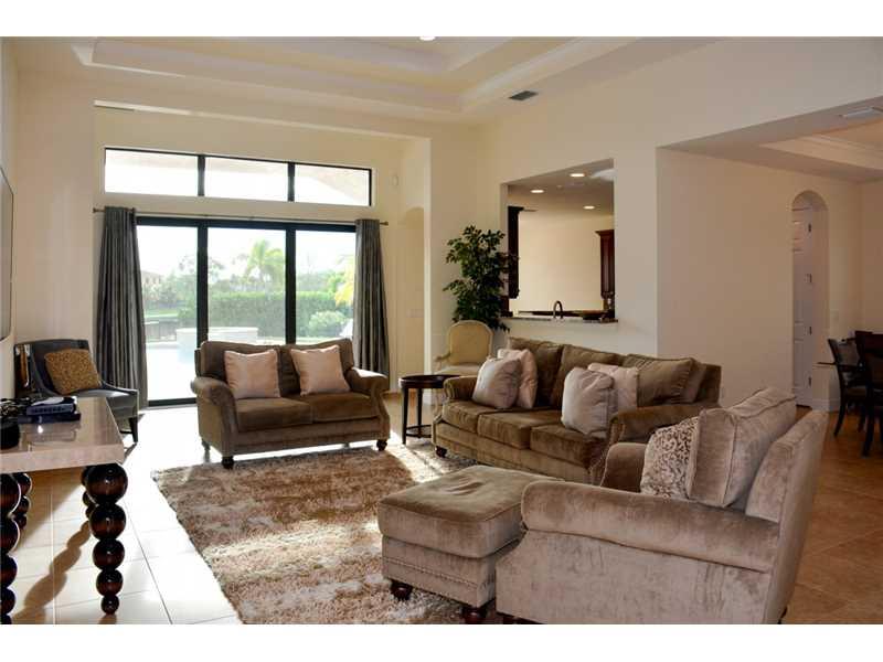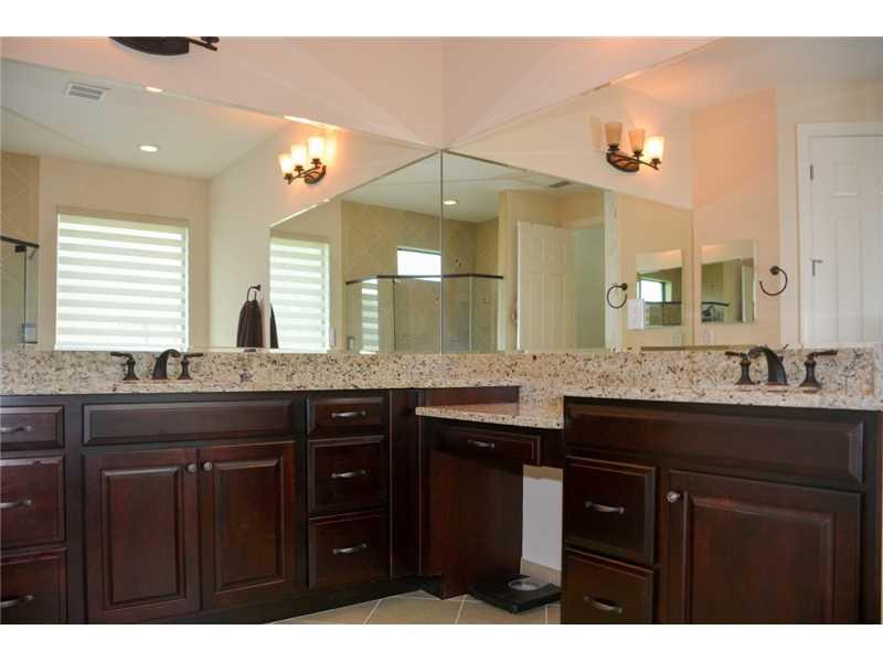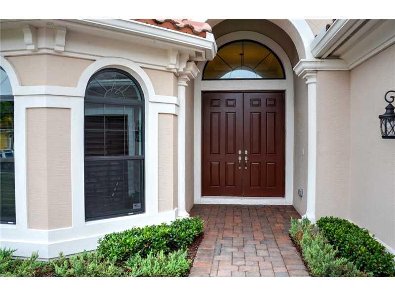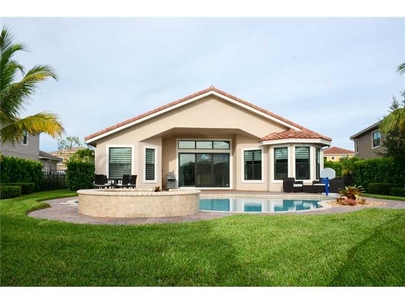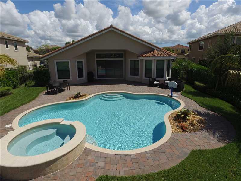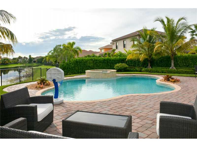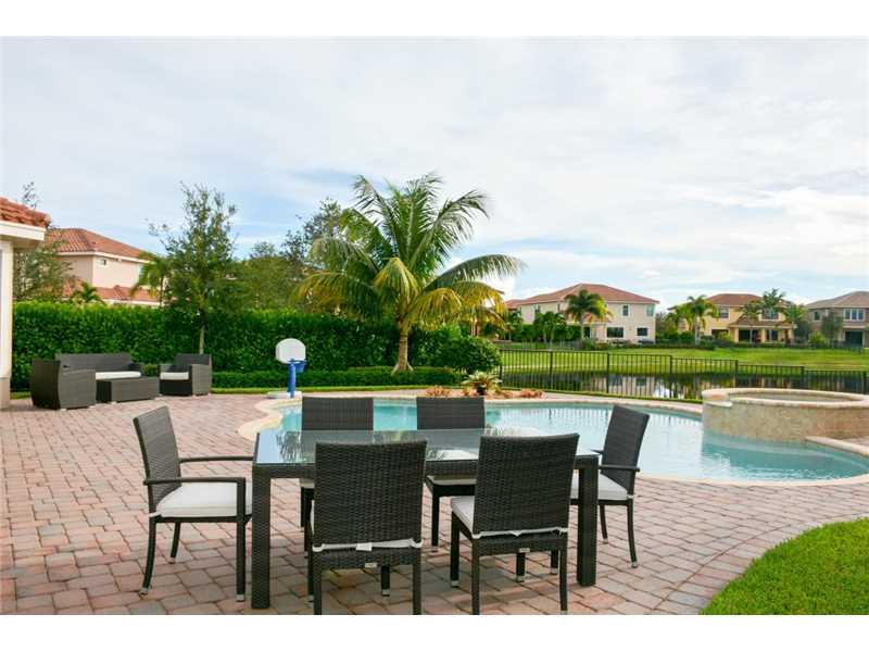 Gorgeous 4 bedroom, 3 bath Salerno model. Doors open to an inviting foyer leading to an expansive great room and formal dining room w/coffered ceilings. Sliding doors open to covered lanai. The gourmet kitchen has granite countertops, stainless steel appl iances & lovely sunlit breakfast area. The spacious master suite has two large walk-in closets. Master bath w/ his-and-her vanities and Roman tub w/ separate shower. Wood flooring in all bedrooms. Spacious patio & custom pool overlooking the lake.